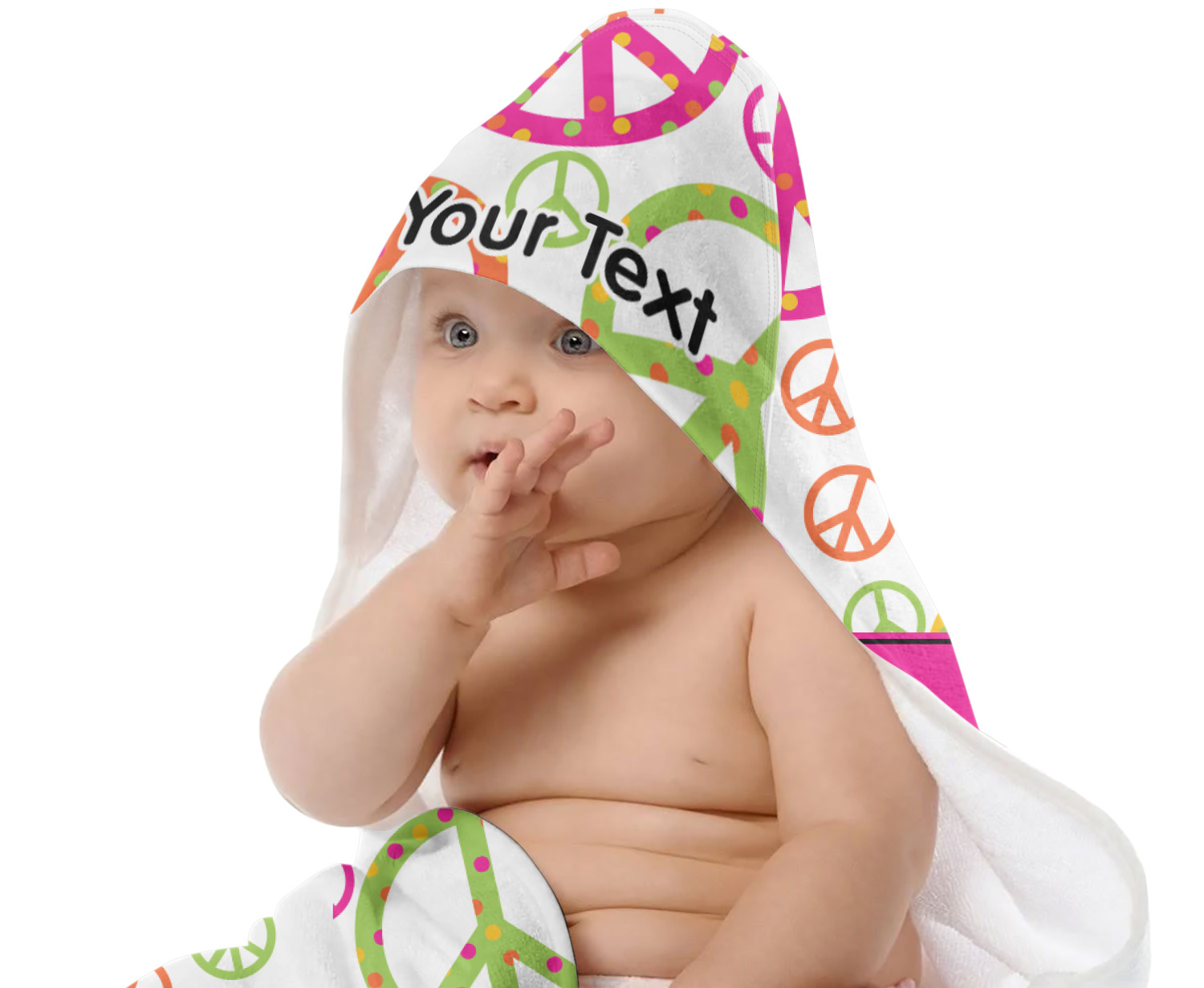 This baby towel is made with a plush microfiber velour and cotton terry. and thus will be soft and gentle against your newborn's skin, but also, very absorbent. Your customization is printed across the front & the hood, while the inside is a classy white.