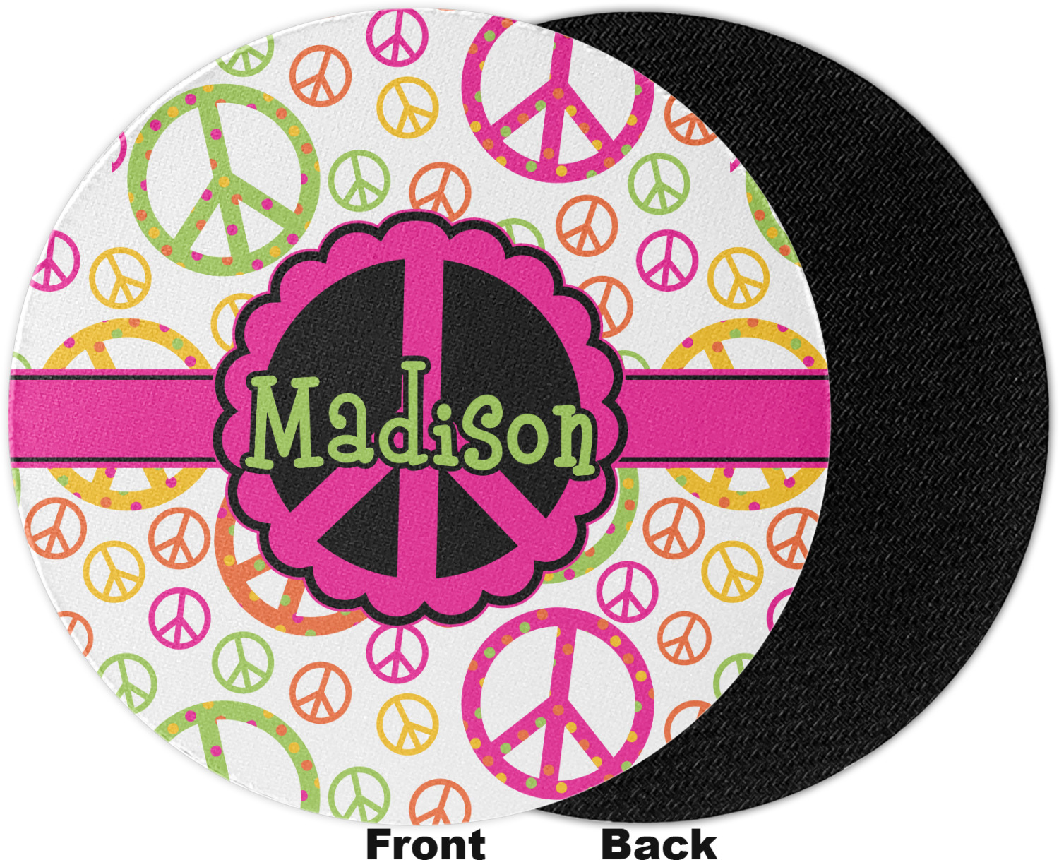This design is totally groovy and will let the little hippie chick in you shine. Our peace sign design is simply adorable and has beautiful vibrant colors of pink, orange, lime green and yellow. The larger peace signs have fun polka dots and are surrounded by smaller solid colored peace signs.