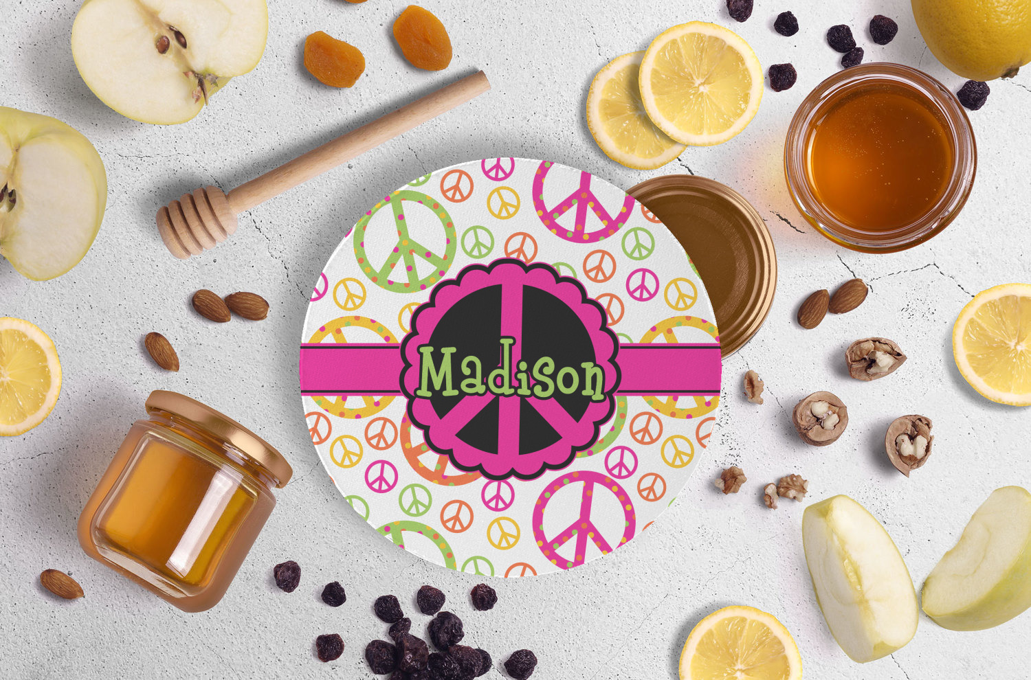 Made from rubber and a polyester top, these personalized jar openers serve as a functional addition to your kitchen counter-top. With its light weight and thin structure, these manual jar openers are straightforward and easy to use. The tool has a 5" diameter, and can therefore fit over most jars that have a diameter smaller than 4".