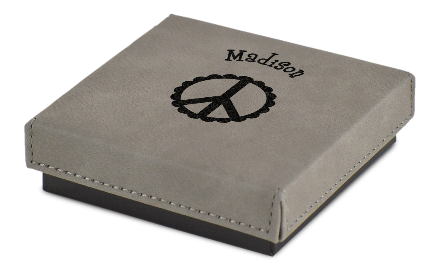 This jewelry gift box measures 3.5 inches long by 3.5 inches wide, and 1 inch deep. The box fits different sized jewelry items such as bracelets, necklaces, watches, earrings, rings and more. Engraved with a laser this high quality paper board and faux leather jewelry gift box is unique and makes any gift stand out.