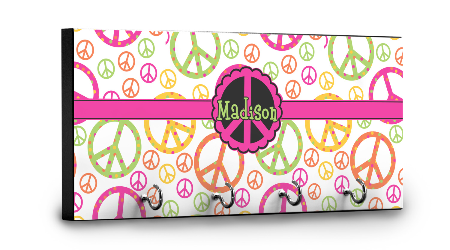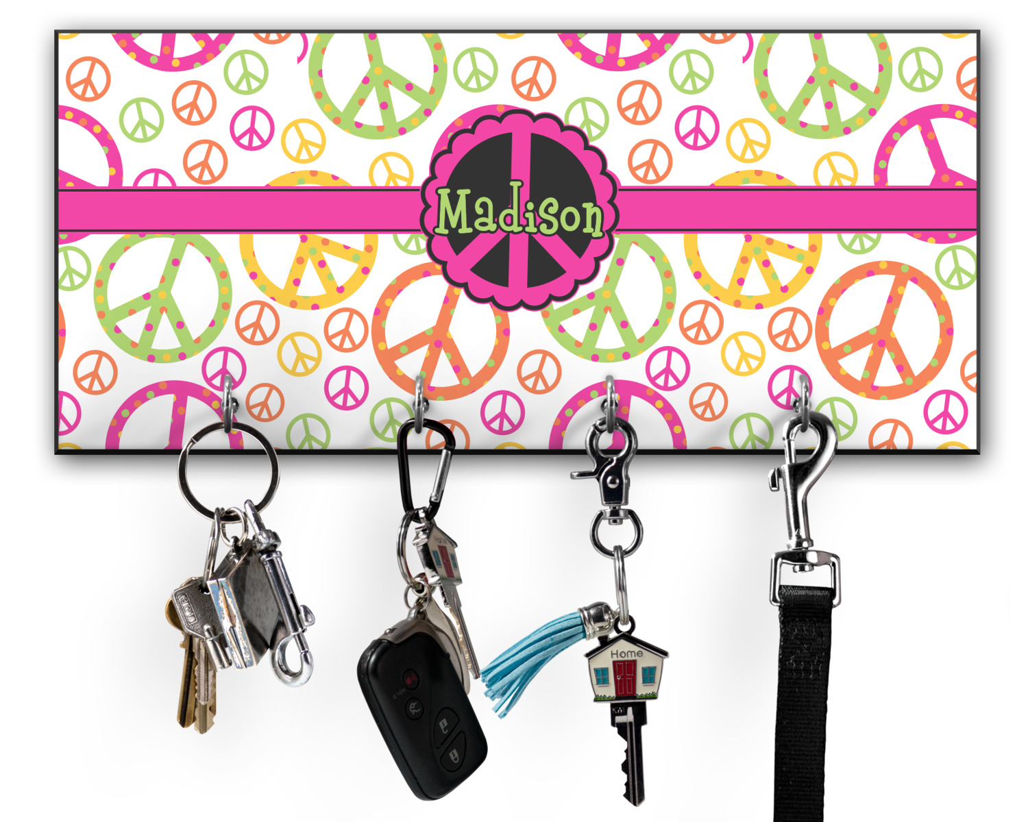 This 11" x 5" key hanger is made of sturdy wood and has four metal hooks lining the bottom. This is the perfect size for a family with several drivers. Not only can you hang keys on it though, but pet leashes and other small items. The board is black on the sides and back and is printed with the design of your choice on the front.