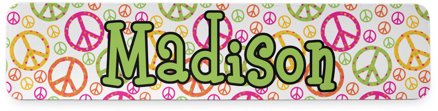 This design is totally groovy and will let the little hippie chick in you shine. Our peace sign design is simply adorable and has beautiful vibrant colors of pink, orange, lime green and yellow. The larger peace signs have fun polka dots and are surrounded by smaller solid colored peace signs.