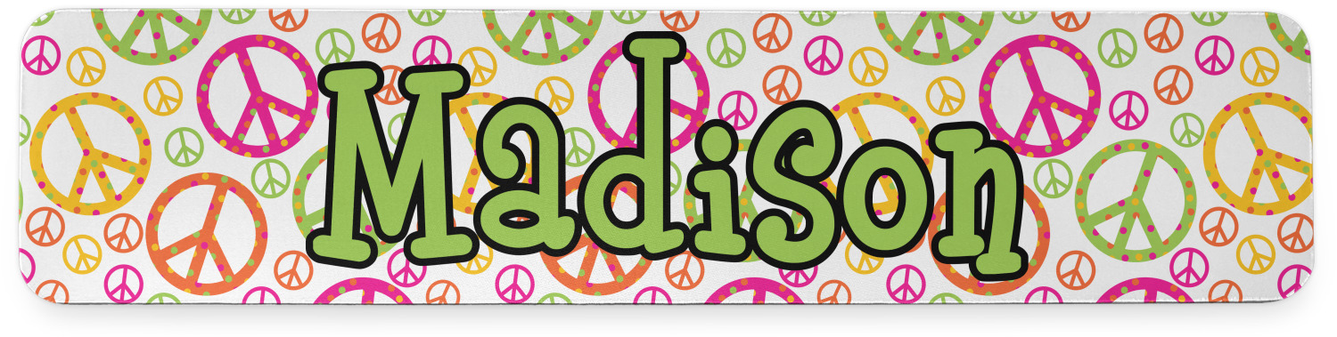 This design is totally groovy and will let the little hippie chick in you shine. Our peace sign design is simply adorable and has beautiful vibrant colors of pink, orange, lime green and yellow. The larger peace signs have fun polka dots and are surrounded by smaller solid colored peace signs.