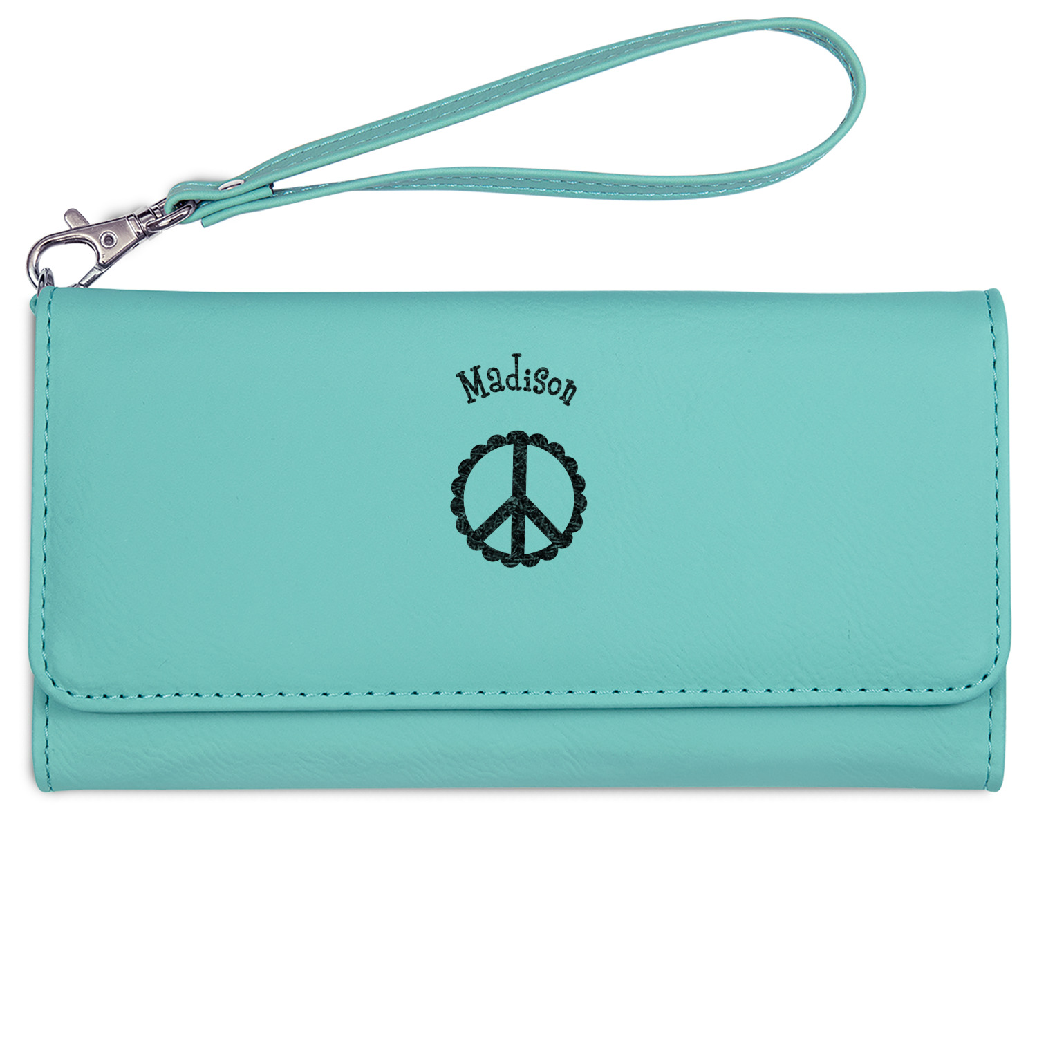 These personalized ladies leather wallets are available in 2 colors - rawhide / cognac and teal.