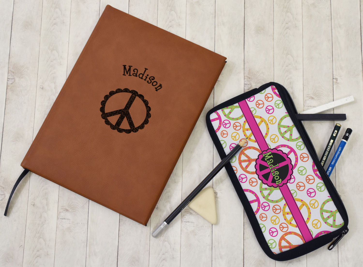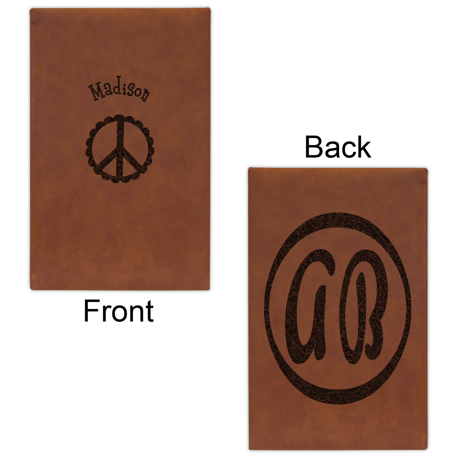 The faux leather covers are a rich cognac / rawhide color and can be customized with your design. From a simple name or monogram or a logo to a detailed mandala - the choice for customization & personalization is truly yours. Customize one of our designs or upload your own.