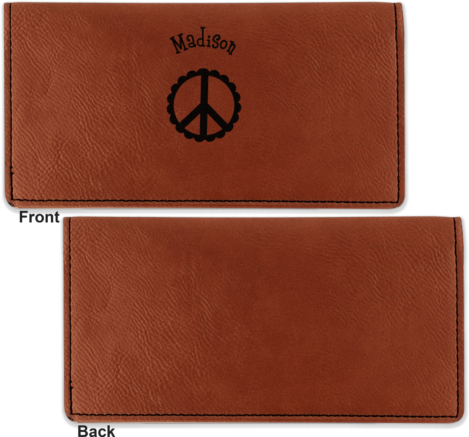 Go into our design center to start personalizing. Your checkbook cover will be laser engraved, making the graphic or text a black color. Choose a fun saying, monogram, or font to go on your checkbook cover. You have the opportunity to do it double or single sided.
