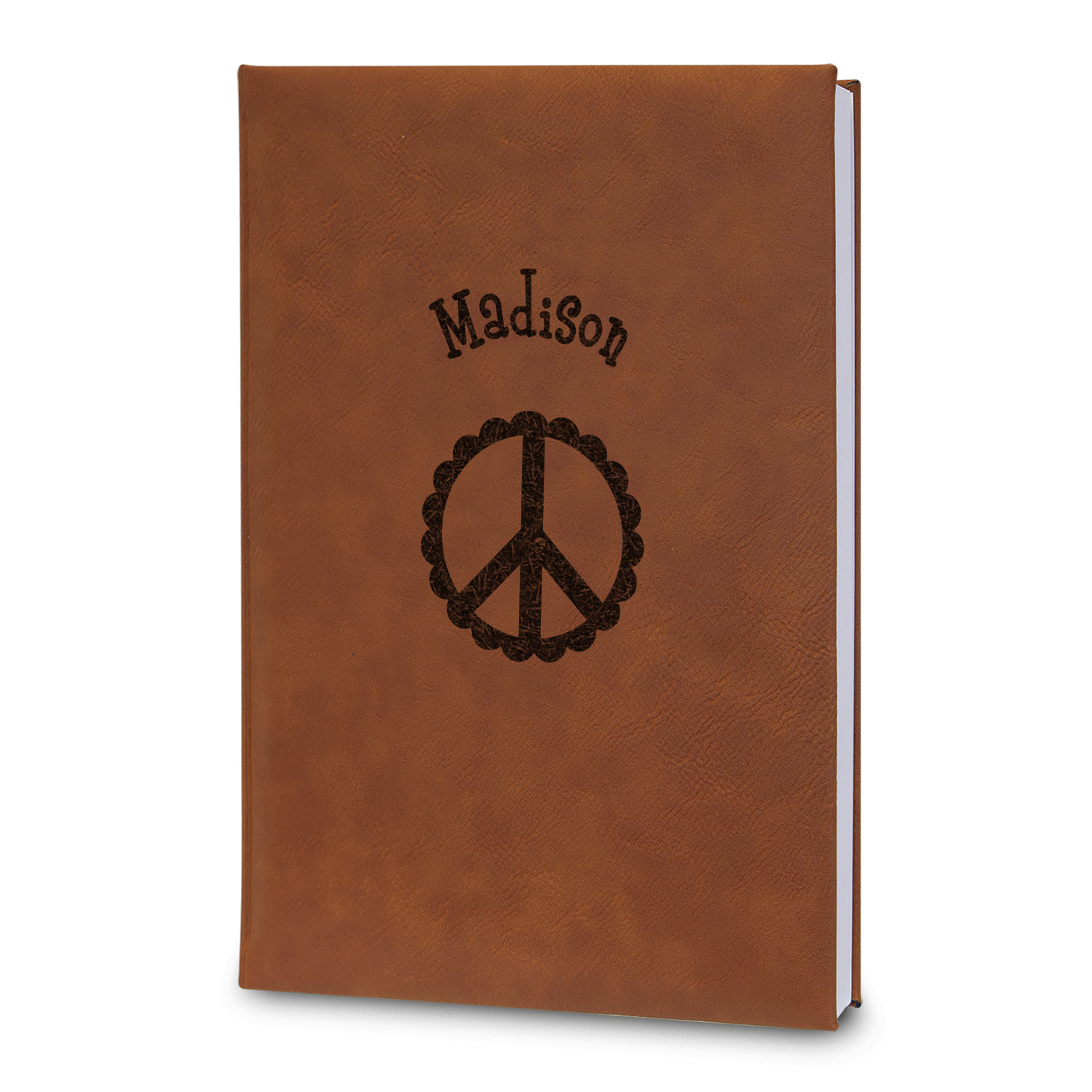 These personalized journals are made from a high quality, cognac brown leatherette that has a rich feel in your hands. The journal notebook features 112 pages of lined paper, and a black, ribbon bookmark to keep your place when closed.