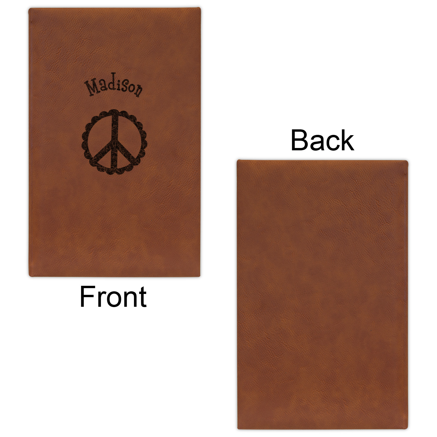 Available in two sizes - small at 8.25" x 5.25" and large at 9.75" x 7", these journal are the ideal size for purses and backpacks alike. Your personalized design is precisely laser engraved onto either the front, or the front and back of your new custom journal.