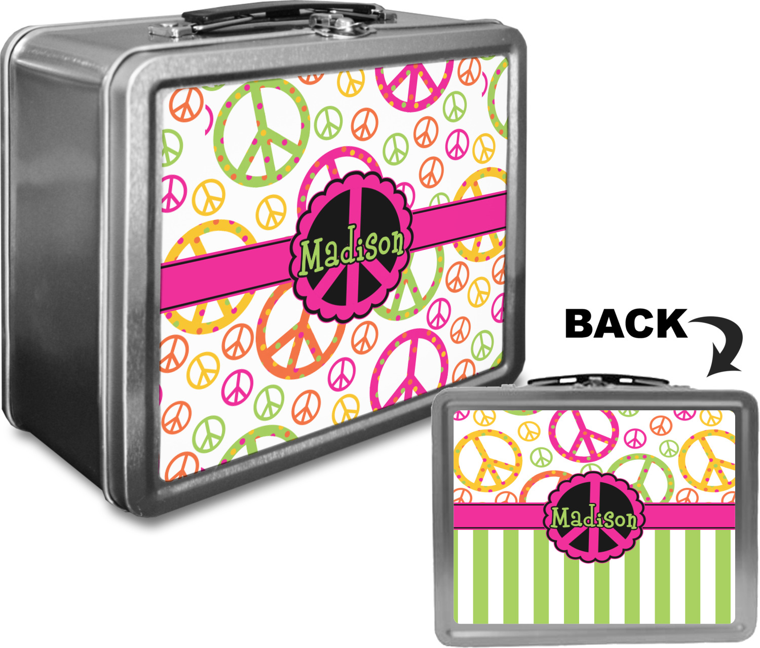 When customized, these boxes can also serve as a unique keepsake box! We print your design on both the front and back of this box, using a high quality matte vinyl, with waterproof inks that withstand the test of time. The designs are then machine cut, and adhered to the sides of the metal lunch container.