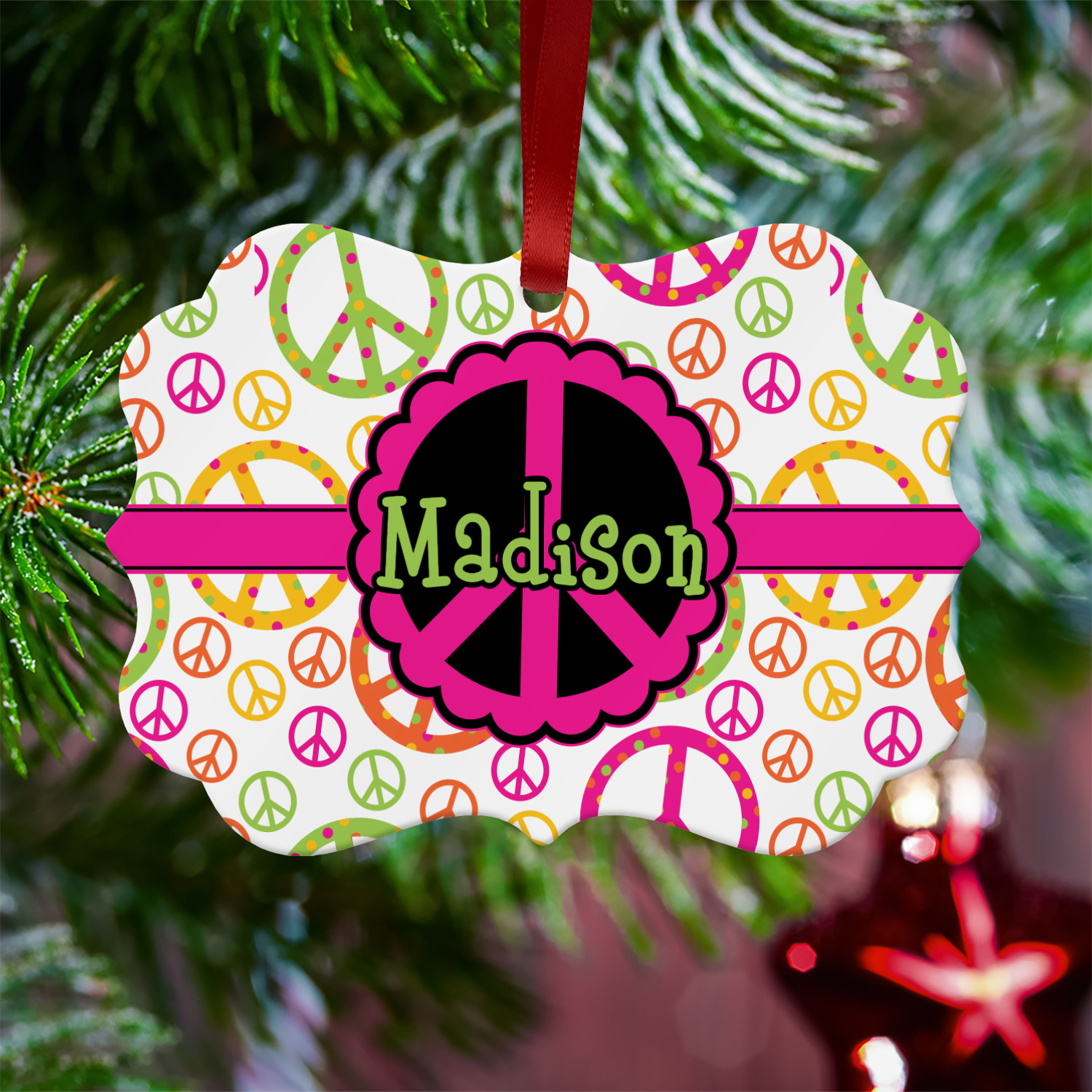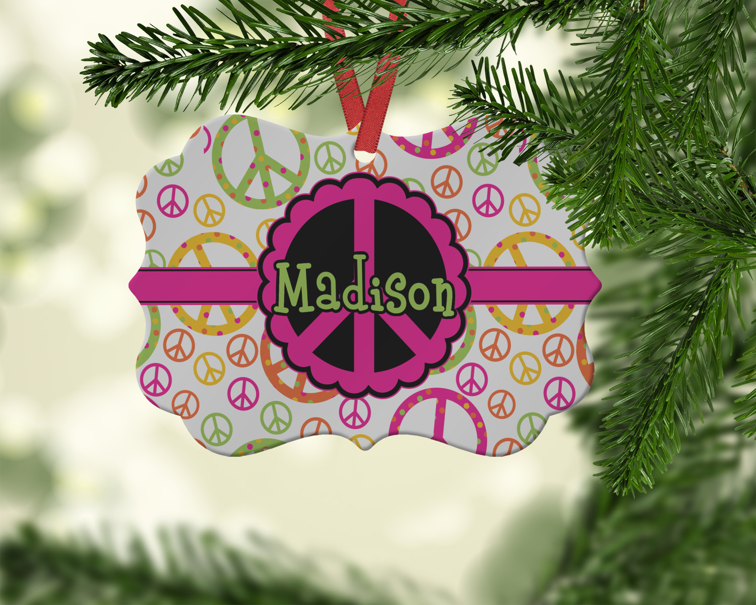 We offer double-sided printing on our personalized metal ornaments all with a gloss finish to make sure your Christmas tree continues to illuminate through the night. We offer 4 different metal ornament shapes to help express yourself or loved ones! Choose from our ball, paw print, star, or frame metal ornaments. Each metal ornament is an aluminum material sure to last you as many years as needed to share the joy and warmth of the holiday. We pair each customizable ornament with a red ribbon to tie your ornament and hang on your Christmas tree!