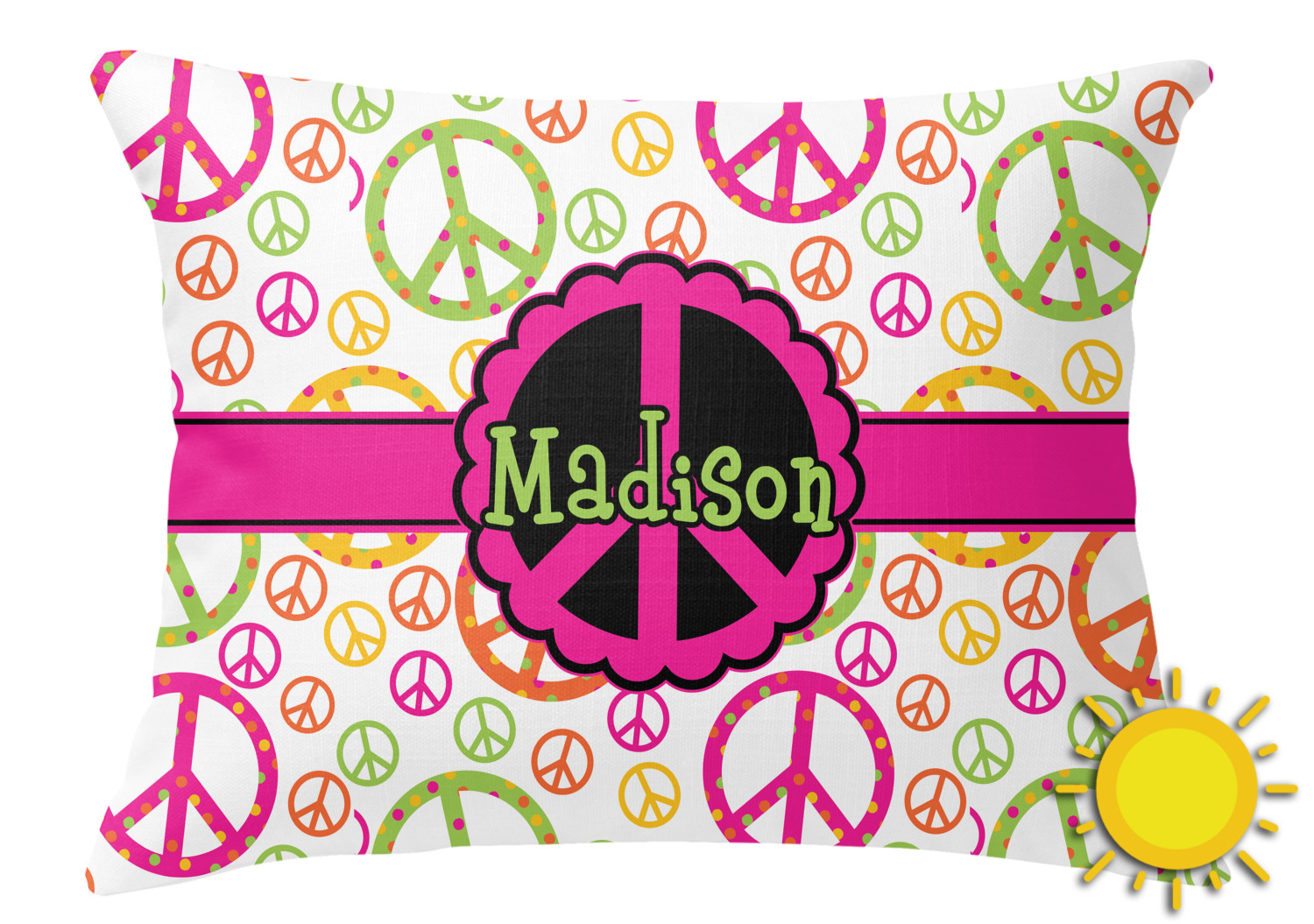 This design is totally groovy and will let the little hippie chick in you shine. Our peace sign design is simply adorable and has beautiful vibrant colors of pink, orange, lime green and yellow. The larger peace signs have fun polka dots and are surrounded by smaller solid colored peace signs.