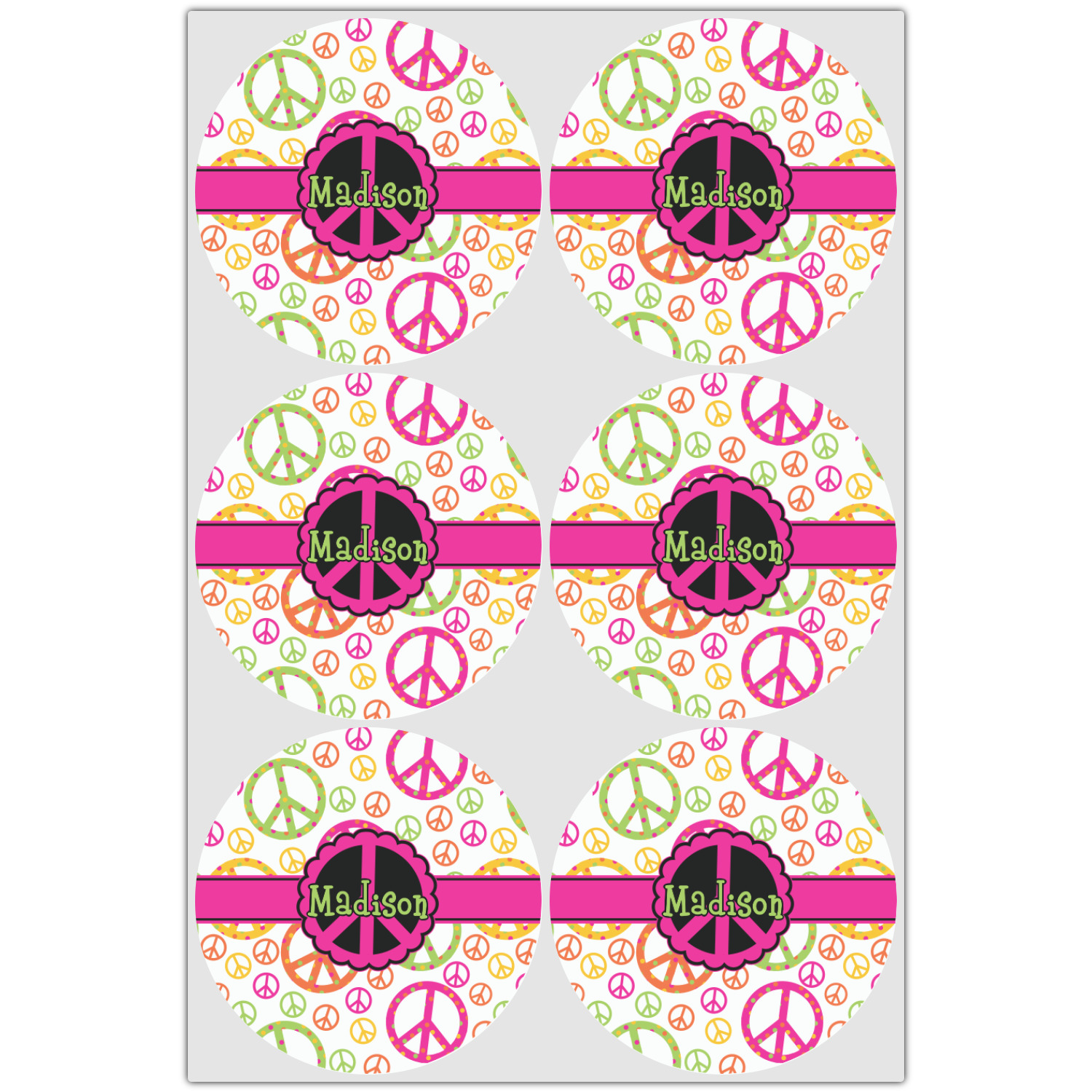 The design has a classic hot pink ribbon trimmed with black, and the label is a beautiful scalloped peace sign in black and hot pink. Personalize of your choice is done in a beautiful lime green color outlined in black.