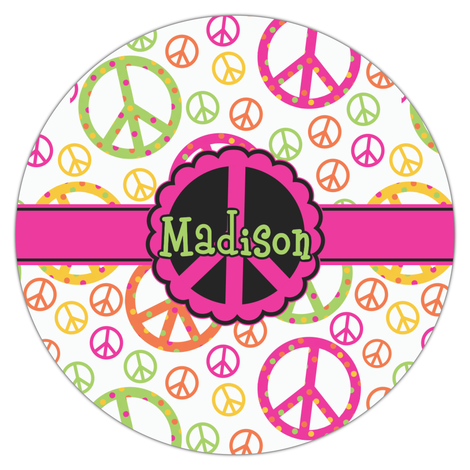 This design is totally groovy and will let the little hippie chick in you shine. Our peace sign design is simply adorable and has beautiful vibrant colors of pink, orange, lime green and yellow. The larger peace signs have fun polka dots and are surrounded by smaller solid colored peace signs.