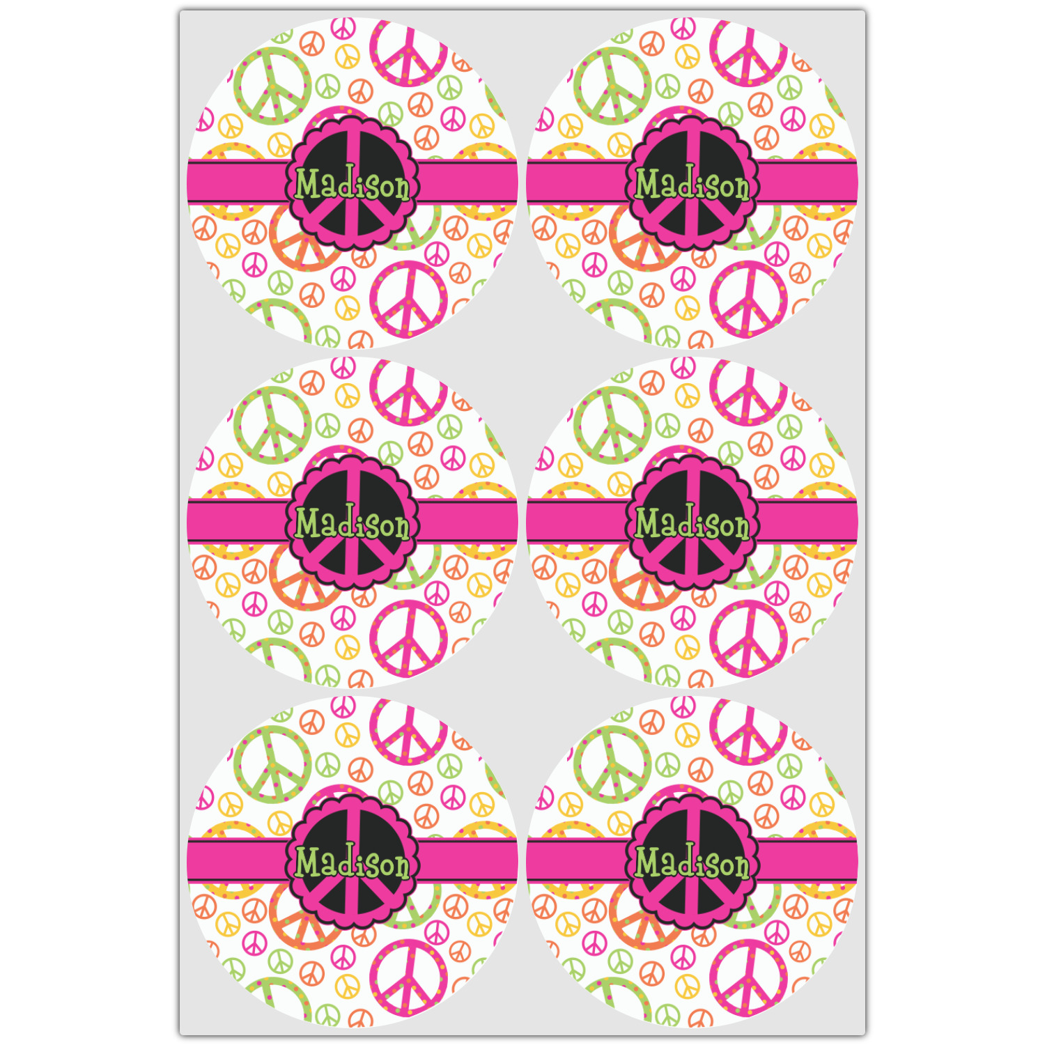 The design has a classic hot pink ribbon trimmed with black, and the label is a beautiful scalloped peace sign in black and hot pink. Personalize of your choice is done in a beautiful lime green color outlined in black.