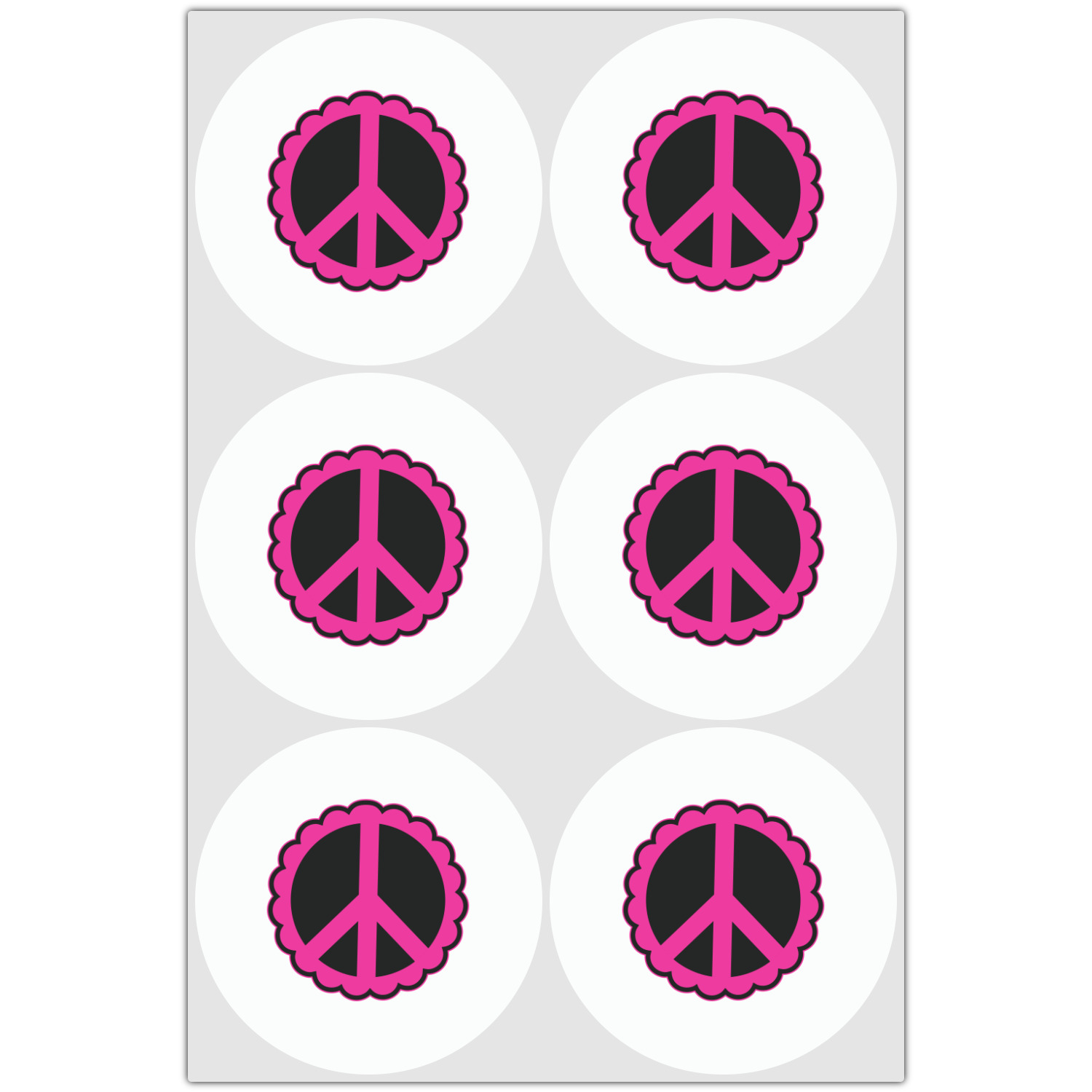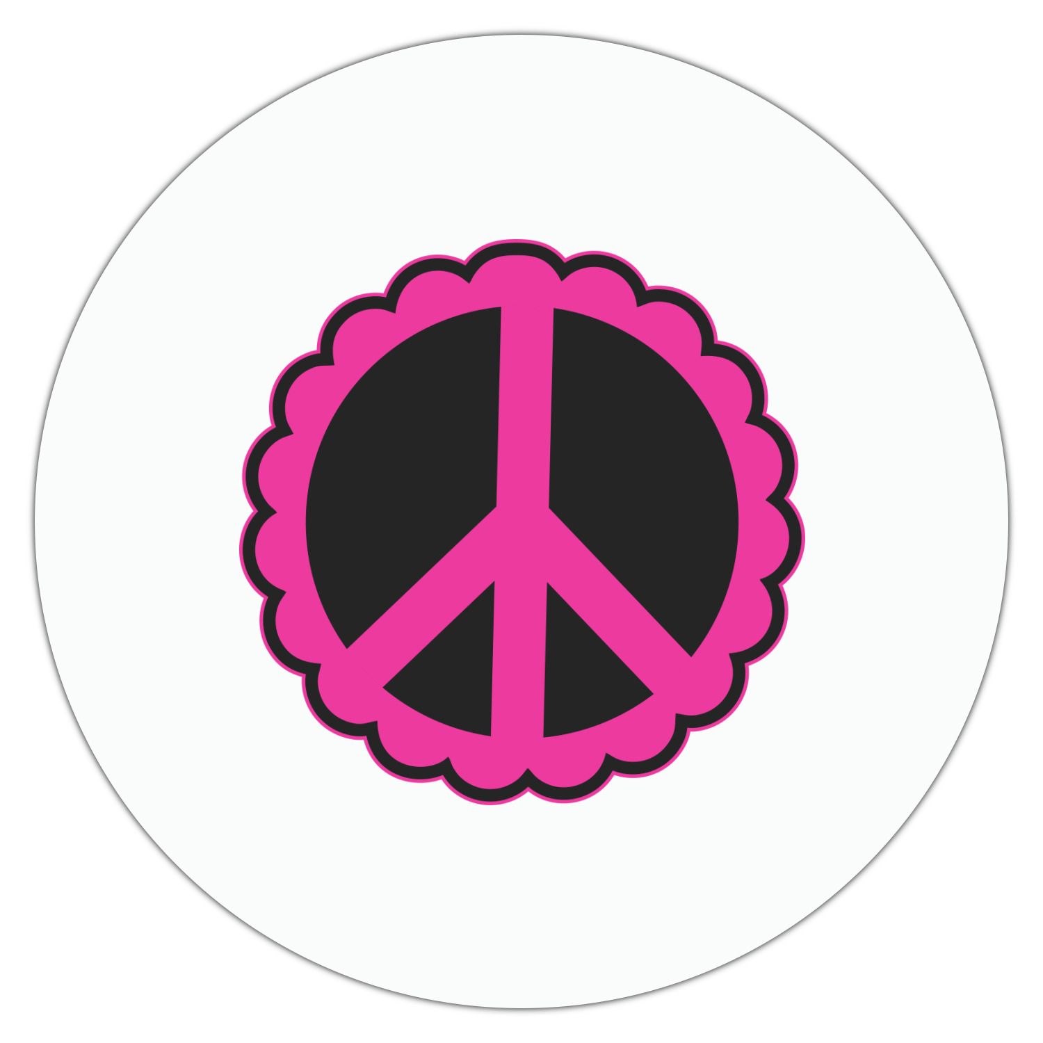 The design has a classic hot pink ribbon trimmed with black, and the label is a beautiful scalloped peace sign in black and hot pink. Personalize of your choice is done in a beautiful lime green color outlined in black.