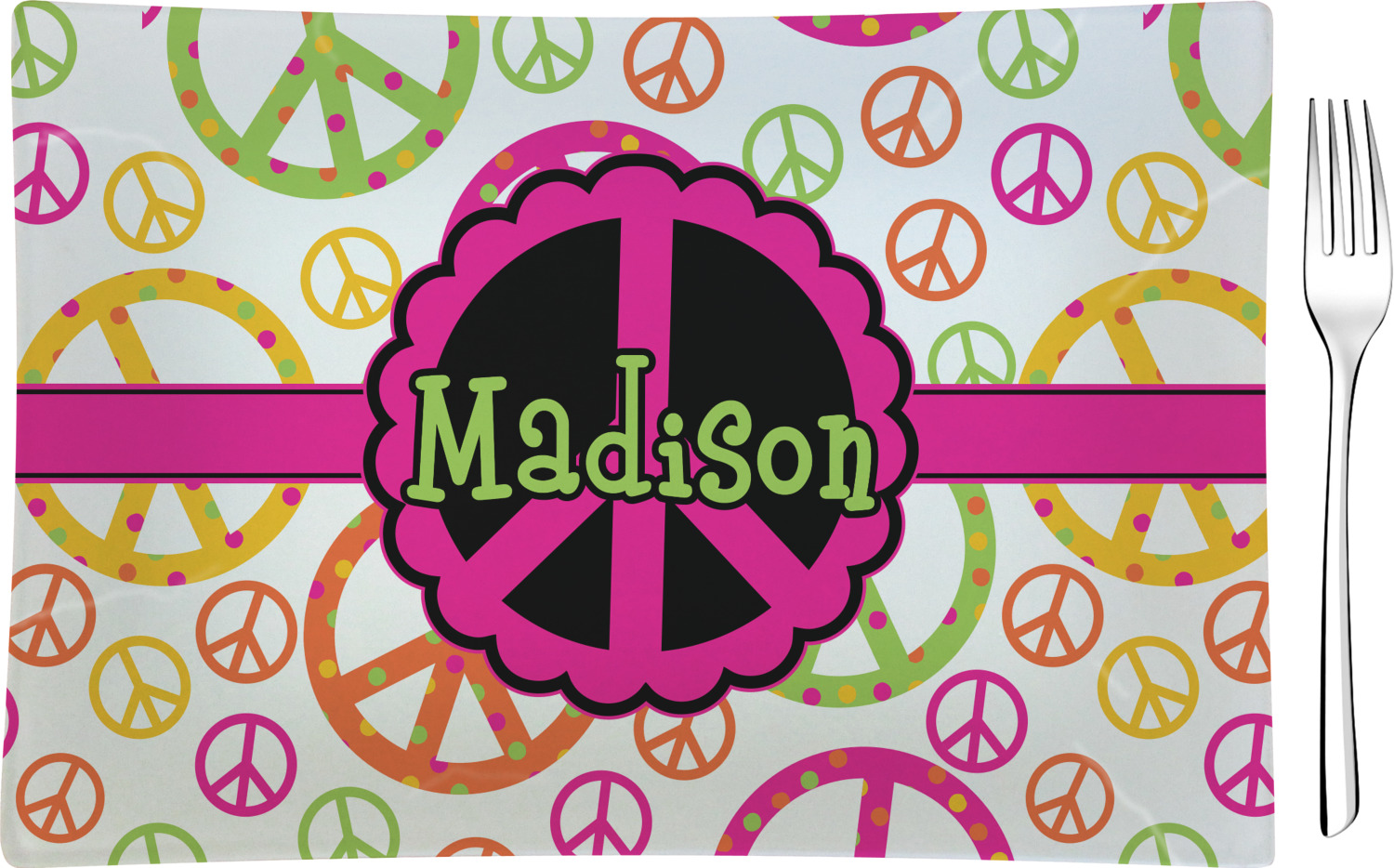 This design is totally groovy and will let the little hippie chick in you shine. Our peace sign design is simply adorable and has beautiful vibrant colors of pink, orange, lime green and yellow. The larger peace signs have fun polka dots and are surrounded by smaller solid colored peace signs.
