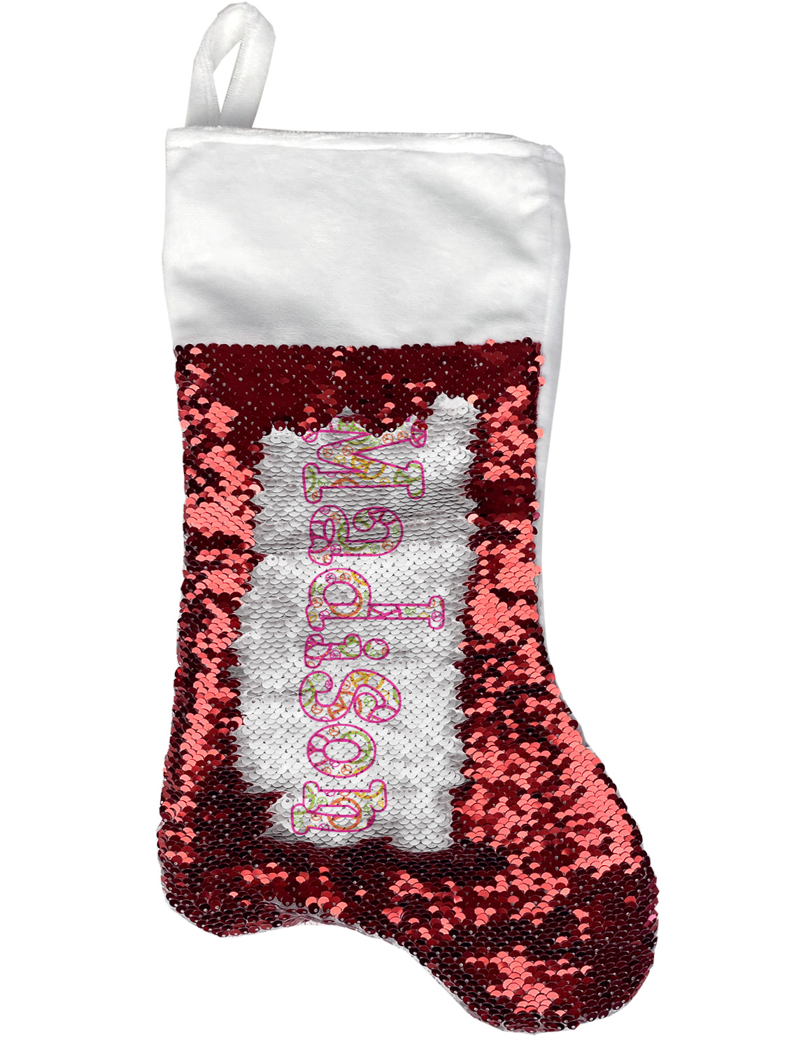 Add some pizzazz to your stocking stuffers this holiday with our sequin Christmas stockings! Run your fingers along the sequins of the Christmas stockings to unveil a whole new world! Take personalized stockings to the next level with our reversible sequins! These sequins stockings are perfect for those that love a little glitz and glam! These unique stockings are sure to sparkle above the fireplace and add some extra Christmas magic to the holidays. Start designing yours today with our online design studio!