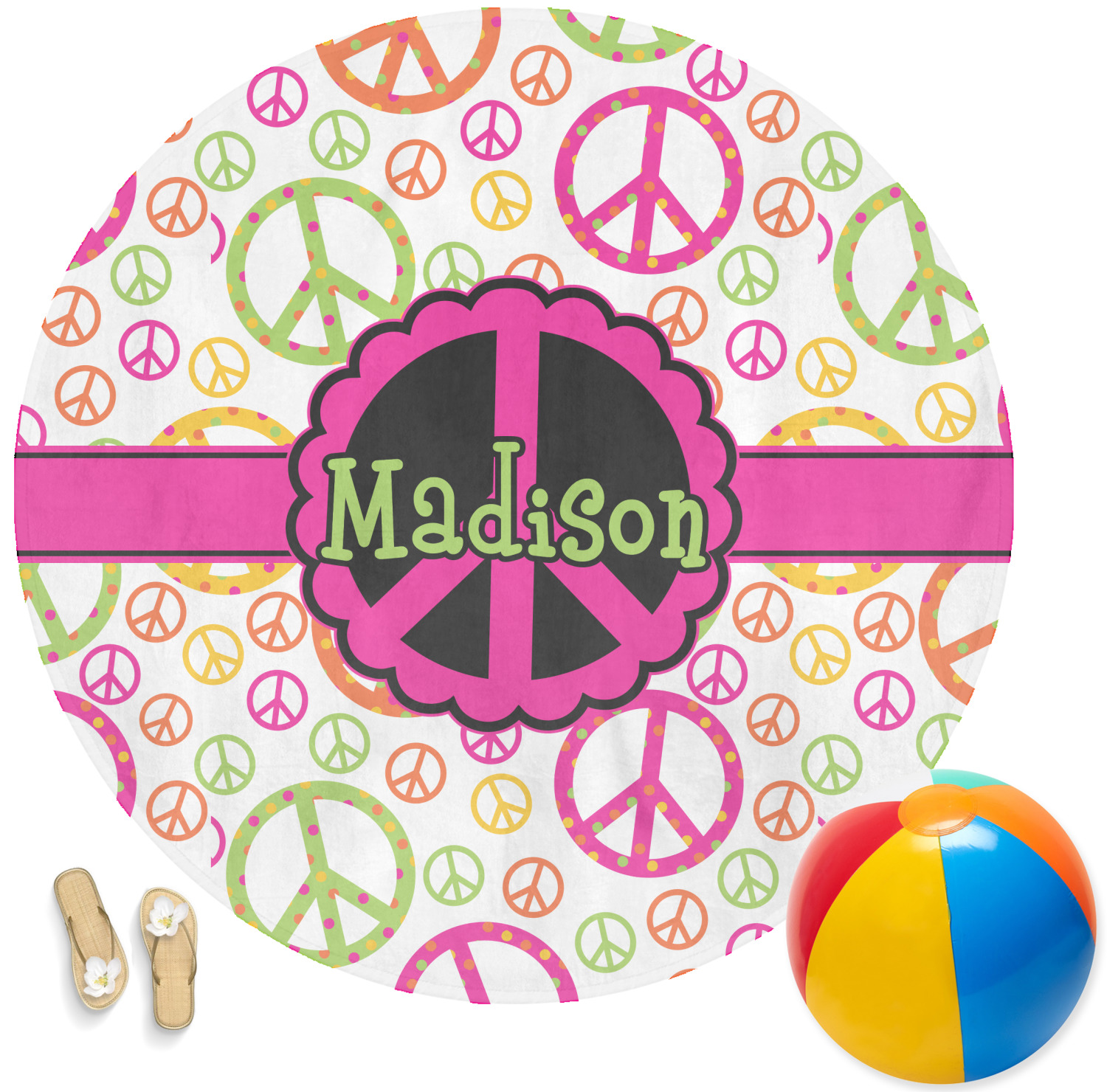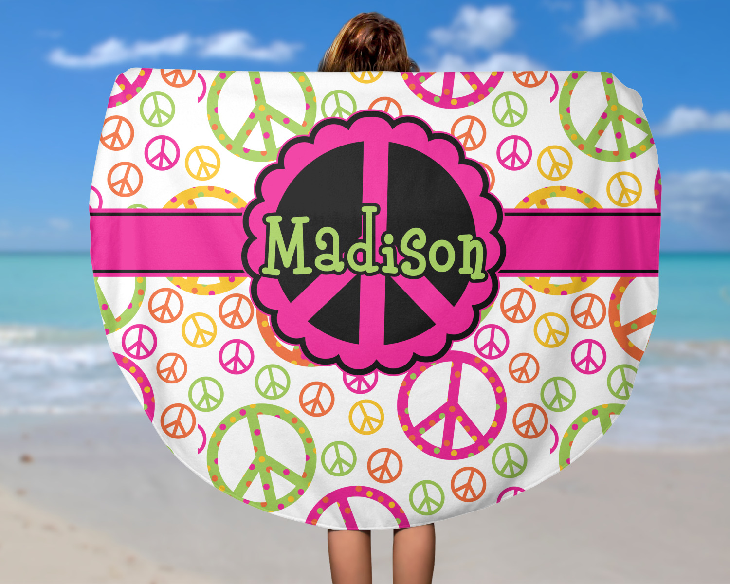 Think out of the box on your next beach, pool, or picnic day in style on your personalized round towel. This must have durable accessory is the perfect size for keeping you, and your possessions out of the sand. Sprawl out in the sun without getting your hands dirty, the unique round design allows for a full range of motion.