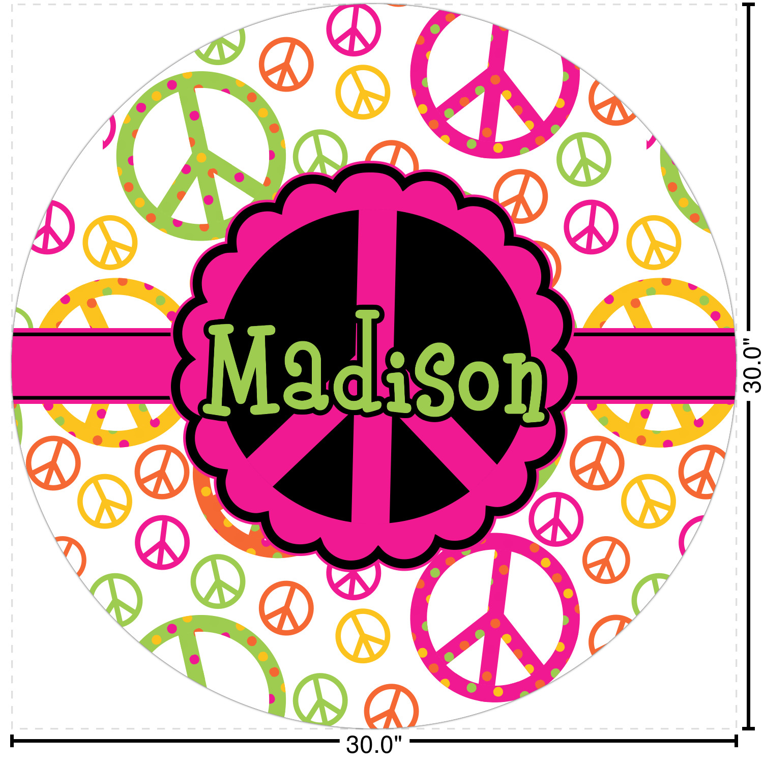 This design is totally groovy and will let the little hippie chick in you shine. Our peace sign design is simply adorable and has beautiful vibrant colors of pink, orange, lime green and yellow. The larger peace signs have fun polka dots and are surrounded by smaller solid colored peace signs.