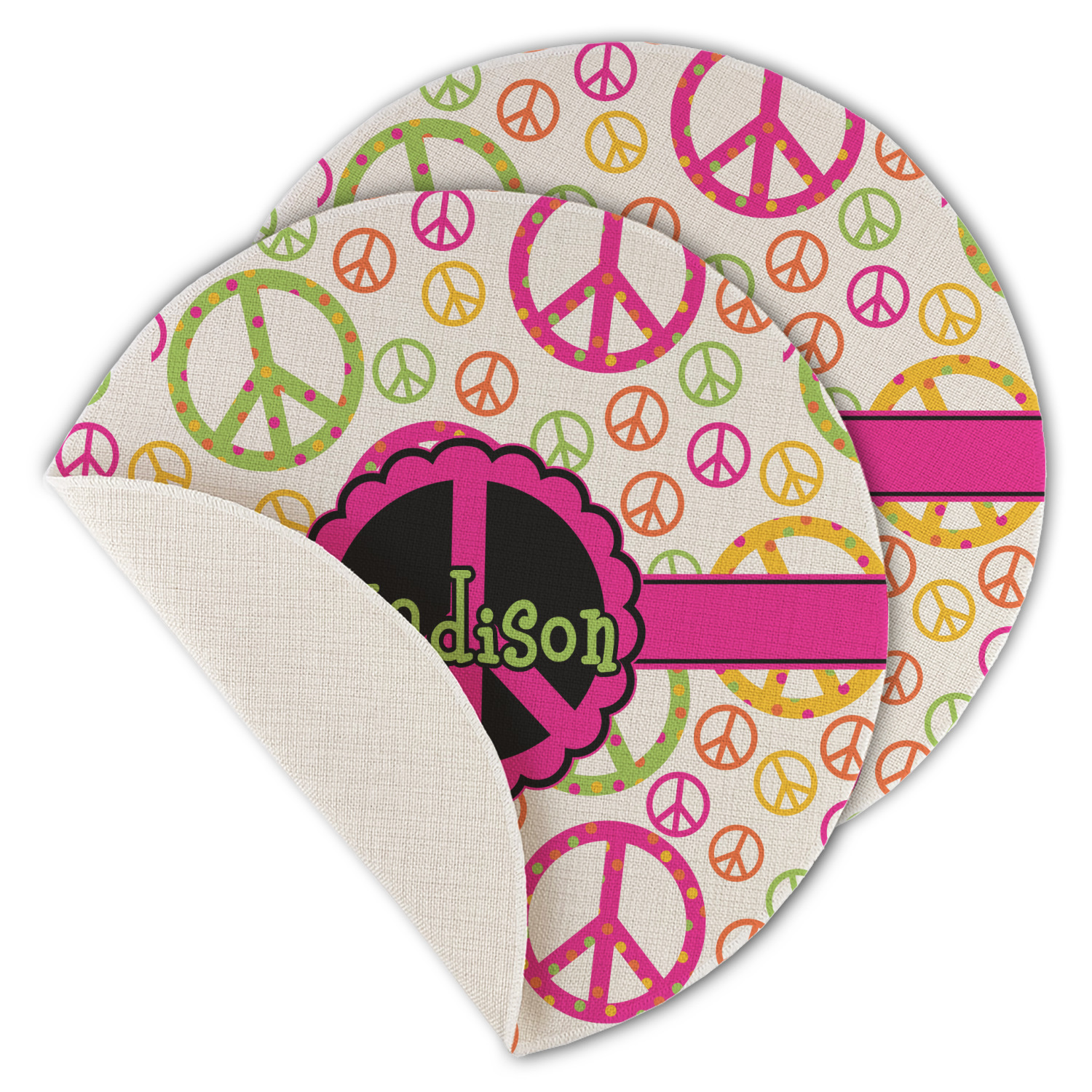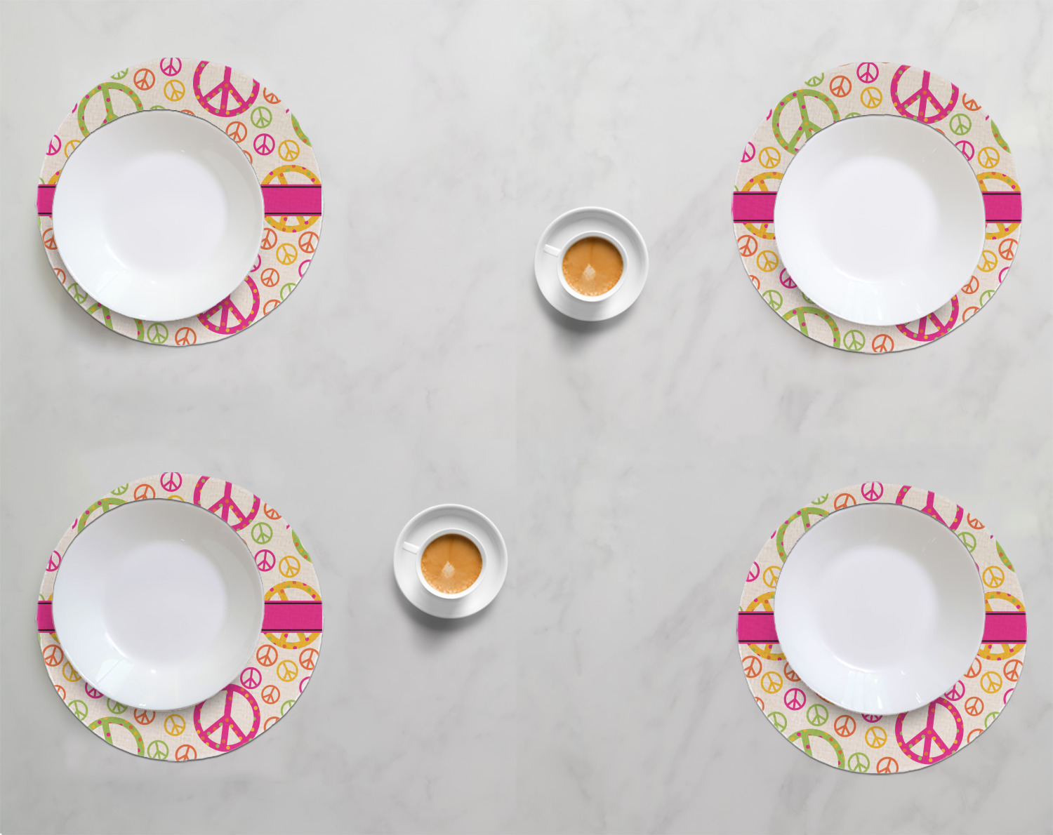 This design is totally groovy and will let the little hippie chick in you shine. Our peace sign design is simply adorable and has beautiful vibrant colors of pink, orange, lime green and yellow. The larger peace signs have fun polka dots and are surrounded by smaller solid colored peace signs.