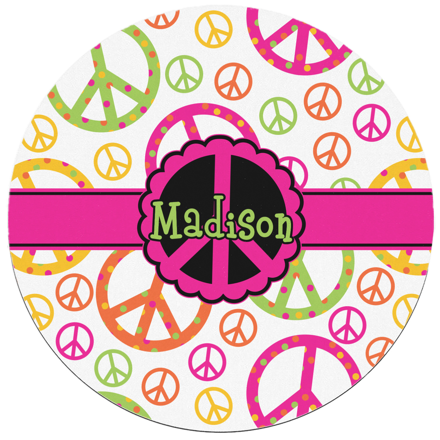 This design is totally groovy and will let the little hippie chick in you shine. Our peace sign design is simply adorable and has beautiful vibrant colors of pink, orange, lime green and yellow. The larger peace signs have fun polka dots and are surrounded by smaller solid colored peace signs.