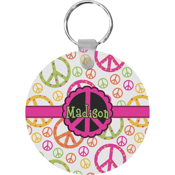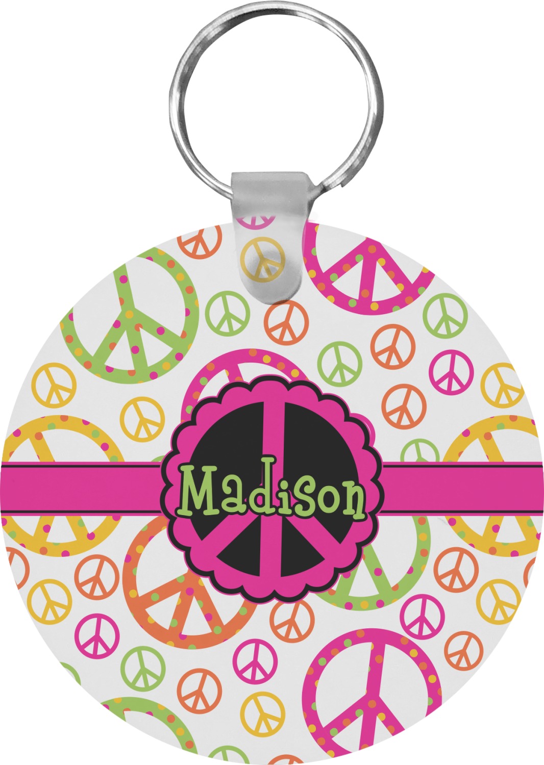 Our personalized keychains attach to the included metal, split key ring with a plastic, removable snap. Since a metal ring is included with your purchase, you have the liberty to keep your keys together on the ring, with or without your unique keychain. We offer this keychain in three different shapes: circle, heart, or diamond. We print your personalized design(s) on both sides of the key chain, and the surface has a glossy, reflective finish that only emphasizes your design. Each keychain is approximately 2.25 by 2.25 inches.