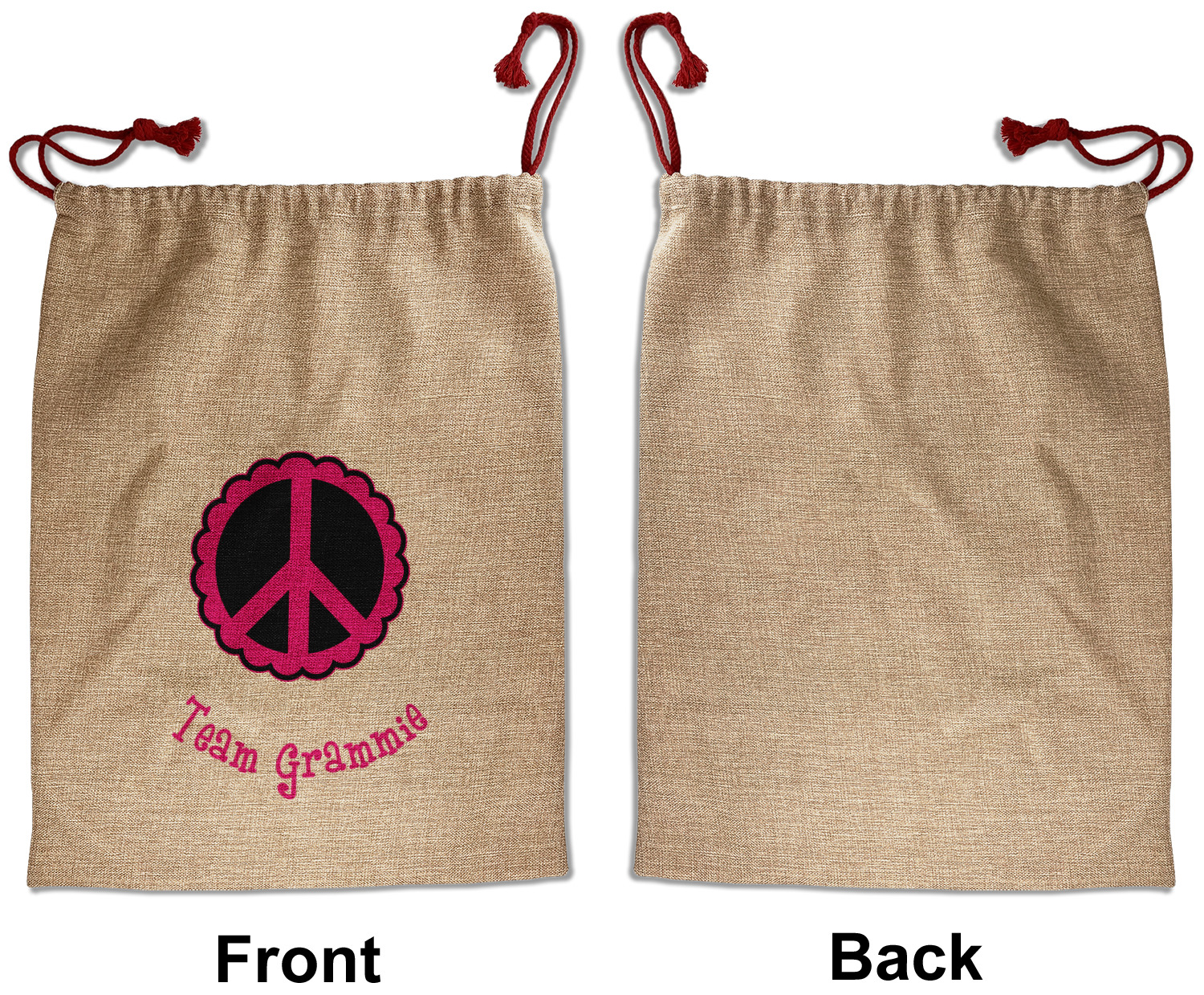 Our Santa sacks print your design on the burlap material giving it a nice rustic, natural design! The burlap material is also machine washable and wrinkle-free, so feel free to fold and store out Santa bags until the next time you need it! Secure your gifts with our red accent drawstring ties at the top of the sack so the mystery of your gift stays a surprise until Christmas day. We offer two types of printing- one side partial print or double-sided partial printing. Design and personalize your own Santa sack in time for the holidays!