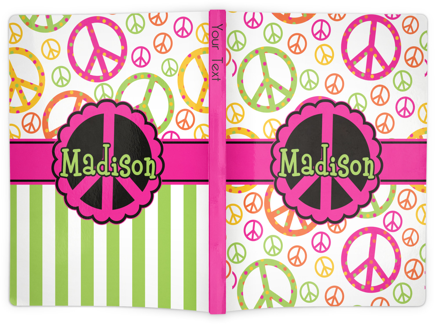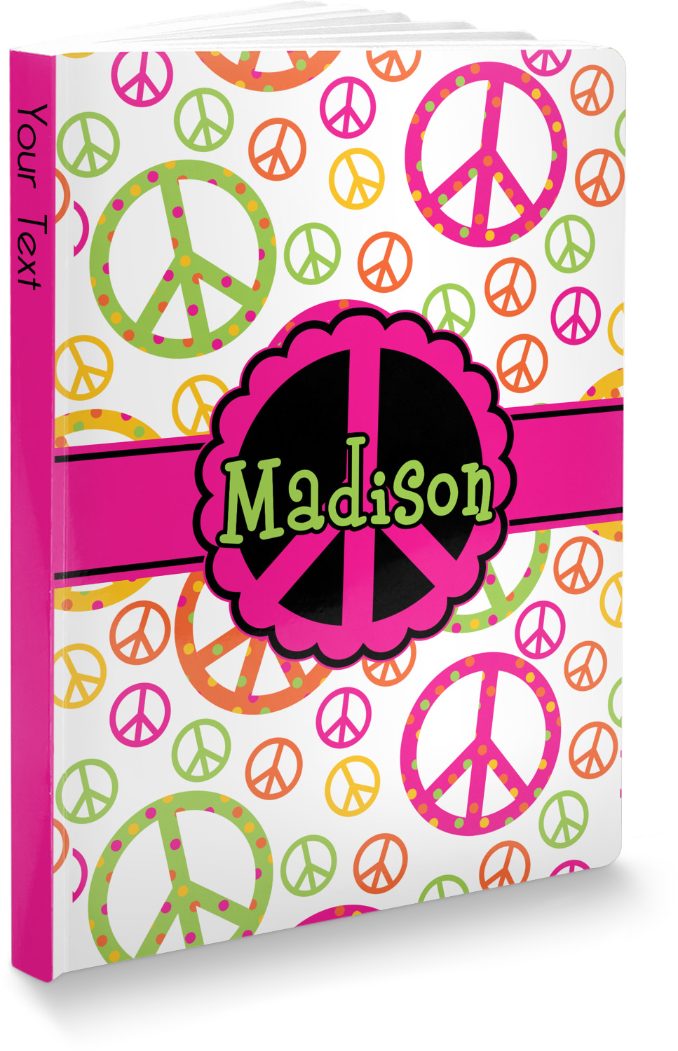 The covers of these personalized journals have a matte, laminate coating, giving them a soft, smooth feel. For your convenience, these custom journals are filled with 100 lined pages that have been perforated for an easy tear and removal. You are able to customize the entire cover of your custom notebook, including the front, back, and spine. The interior of the notebook is white in color.