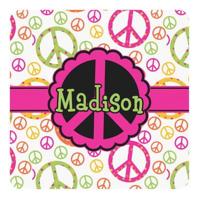 This design is totally groovy and will let the little hippie chick in you shine. Our peace sign design is simply adorable and has beautiful vibrant colors of pink, orange, lime green and yellow. The larger peace signs have fun polka dots and are surrounded by smaller solid colored peace signs.