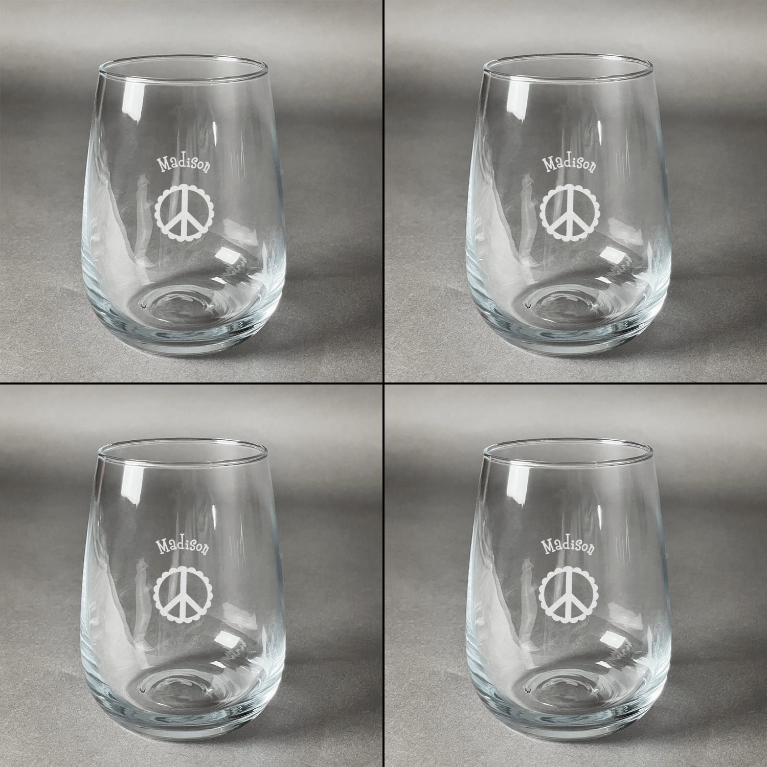 You can have all four glasses engraved with the same design or you can customize and personalize each glass individually - the choice is yours!!