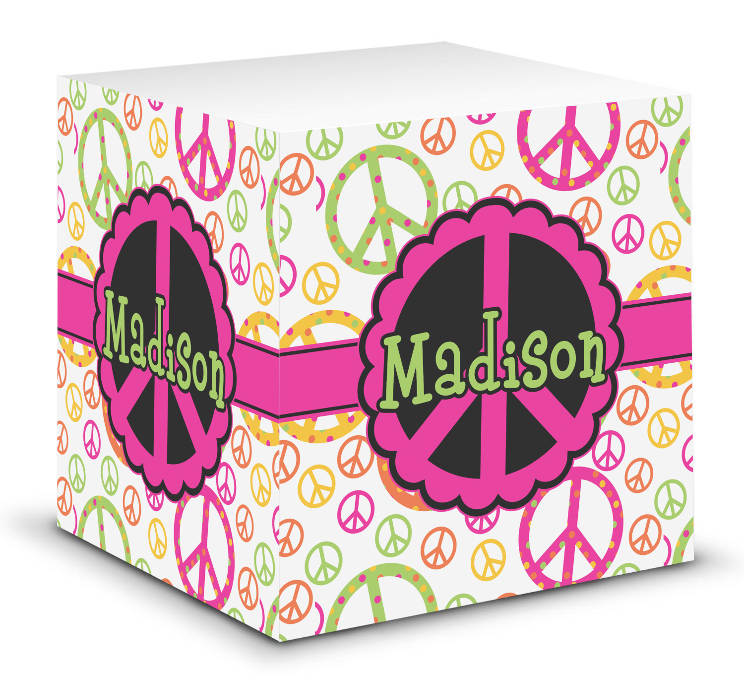 This note cube features 700 sheets of matte, white paper. Each sheet measures at 3.5 by 3.5 inches and has an adhesive strip at its top. Your personalized design is displayed on all four edges of the sticky pad.