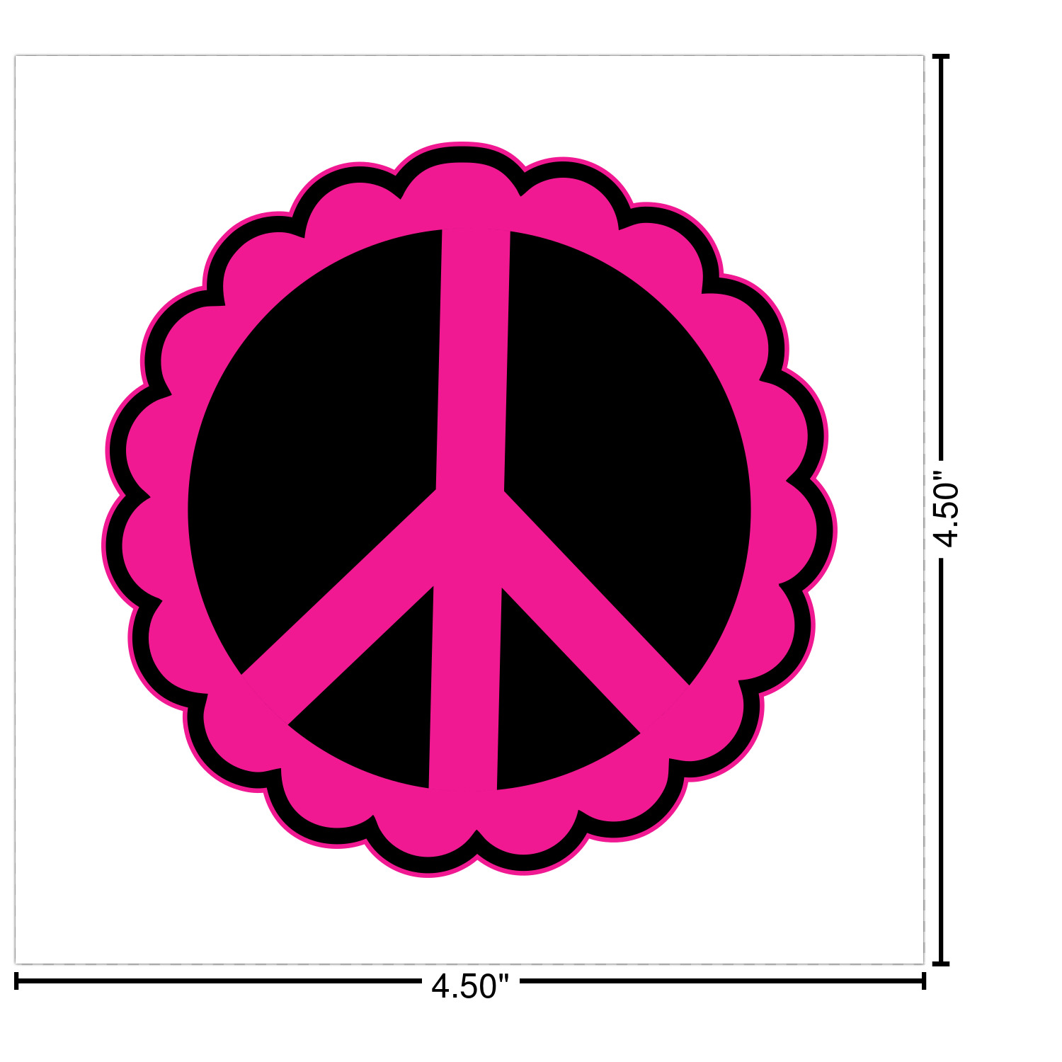 This design is totally groovy and will let the little hippie chick in you shine. Our peace sign design is simply adorable and has beautiful vibrant colors of pink, orange, lime green and yellow. The larger peace signs have fun polka dots and are surrounded by smaller solid colored peace signs.