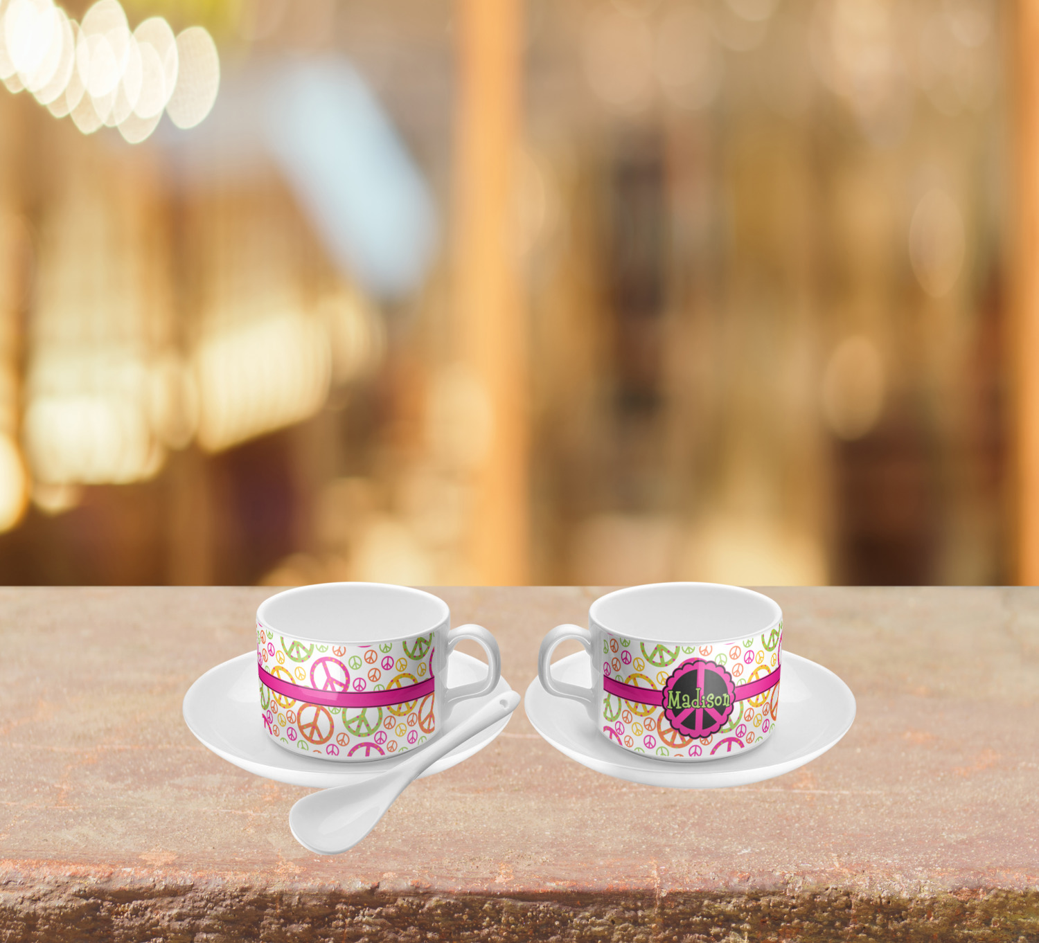 Personalize your cup with the perfect design! The white ceramic makes for a bright background to whatever personalization you decide to add to your little cup. Give your tea or coffee some class! Choose from thousands of patterns and fills in our system to fit your personality! Change whatever elements you like from the text to the ribbons to the graphics.
