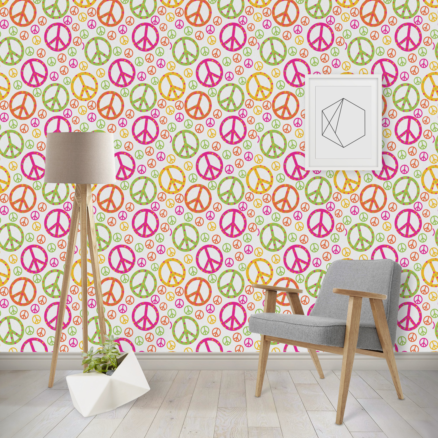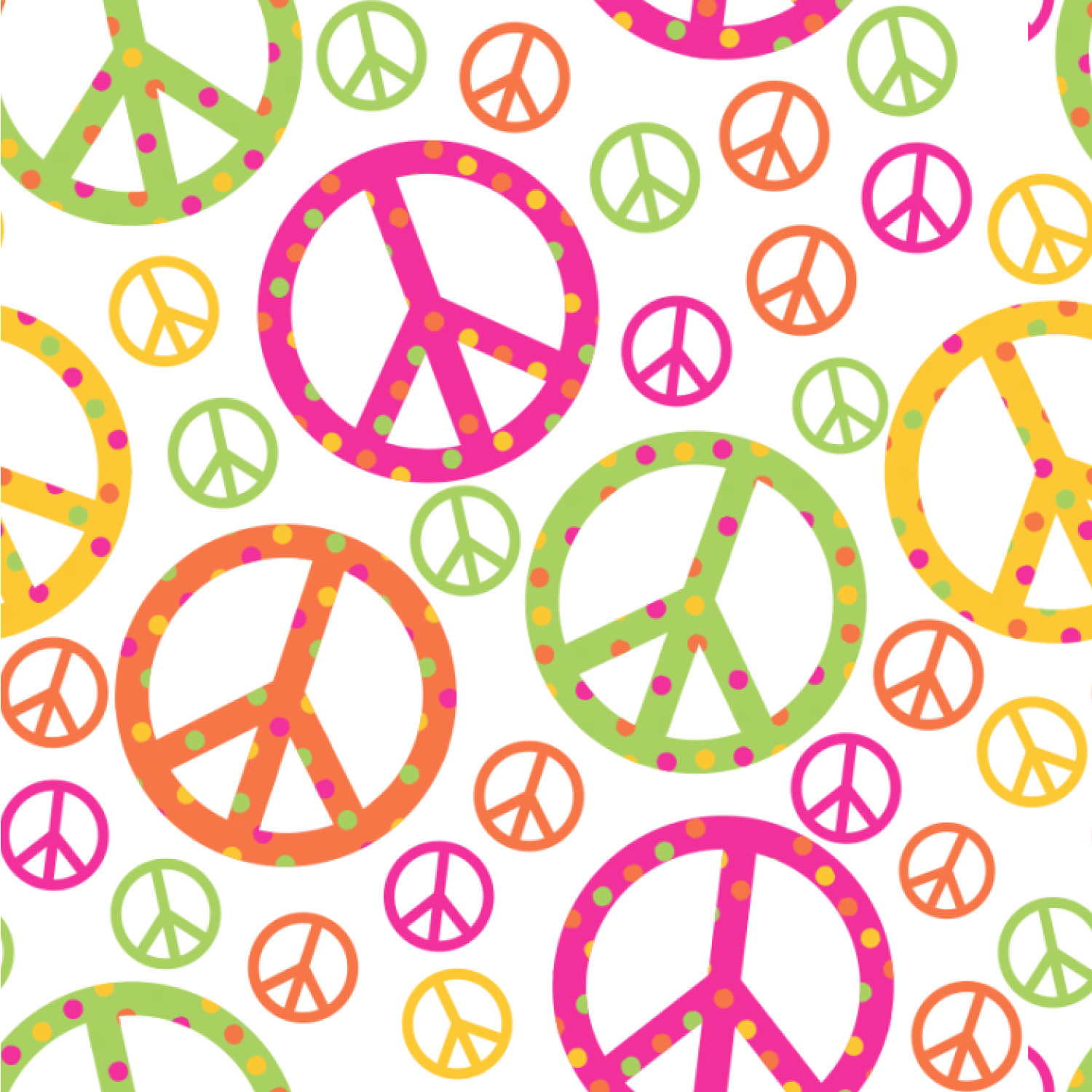 This design is totally groovy and will let the little hippie chick in you shine. Our peace sign design is simply adorable and has beautiful vibrant colors of pink, orange, lime green and yellow. The larger peace signs have fun polka dots and are surrounded by smaller solid colored peace signs.