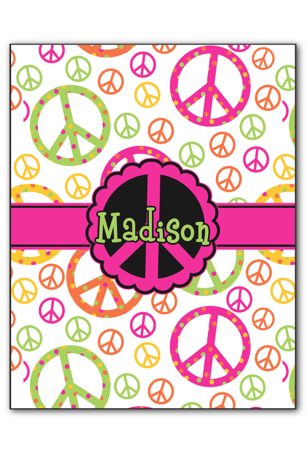 This design is totally groovy and will let the little hippie chick in you shine. Our peace sign design is simply adorable and has beautiful vibrant colors of pink, orange, lime green and yellow. The larger peace signs have fun polka dots and are surrounded by smaller solid colored peace signs.