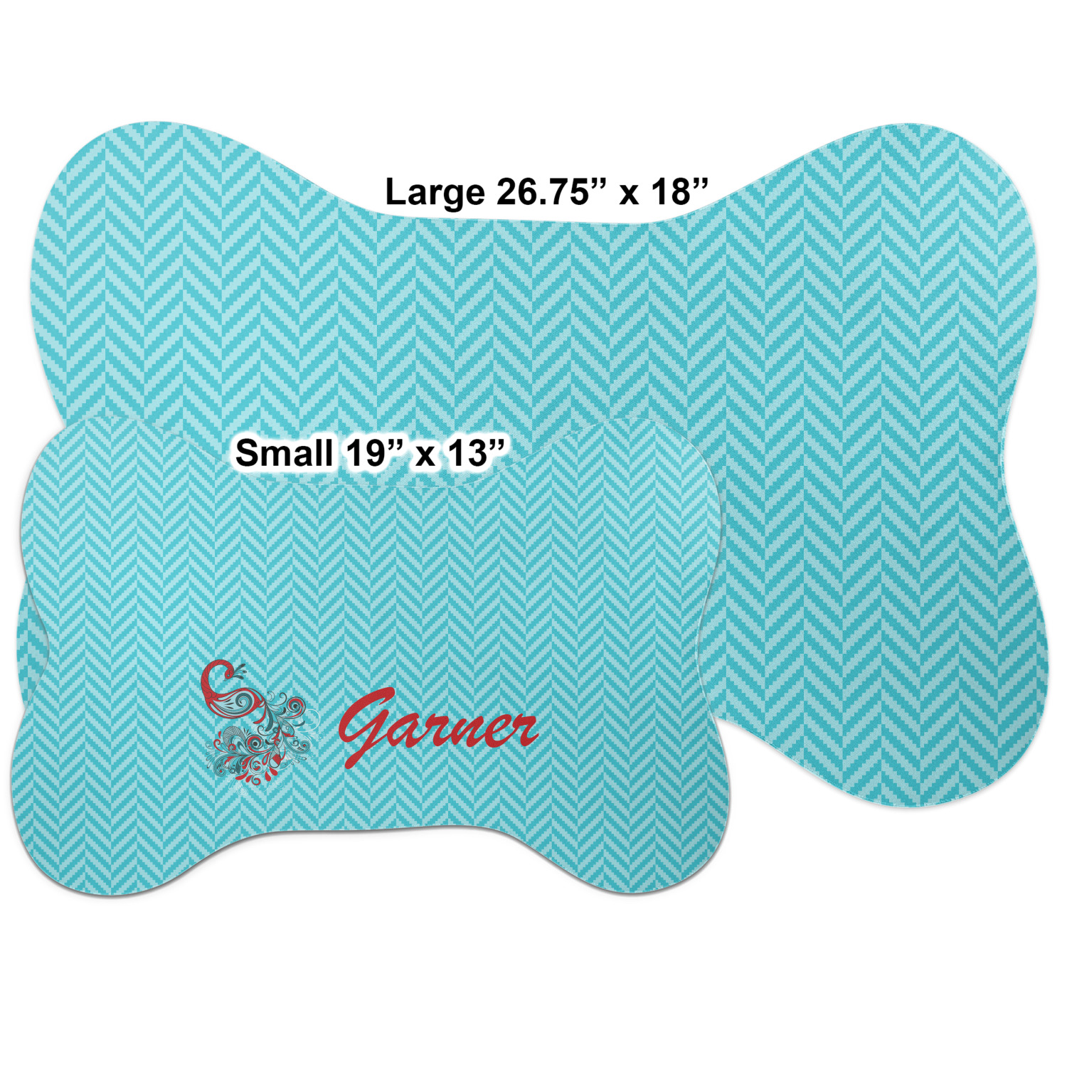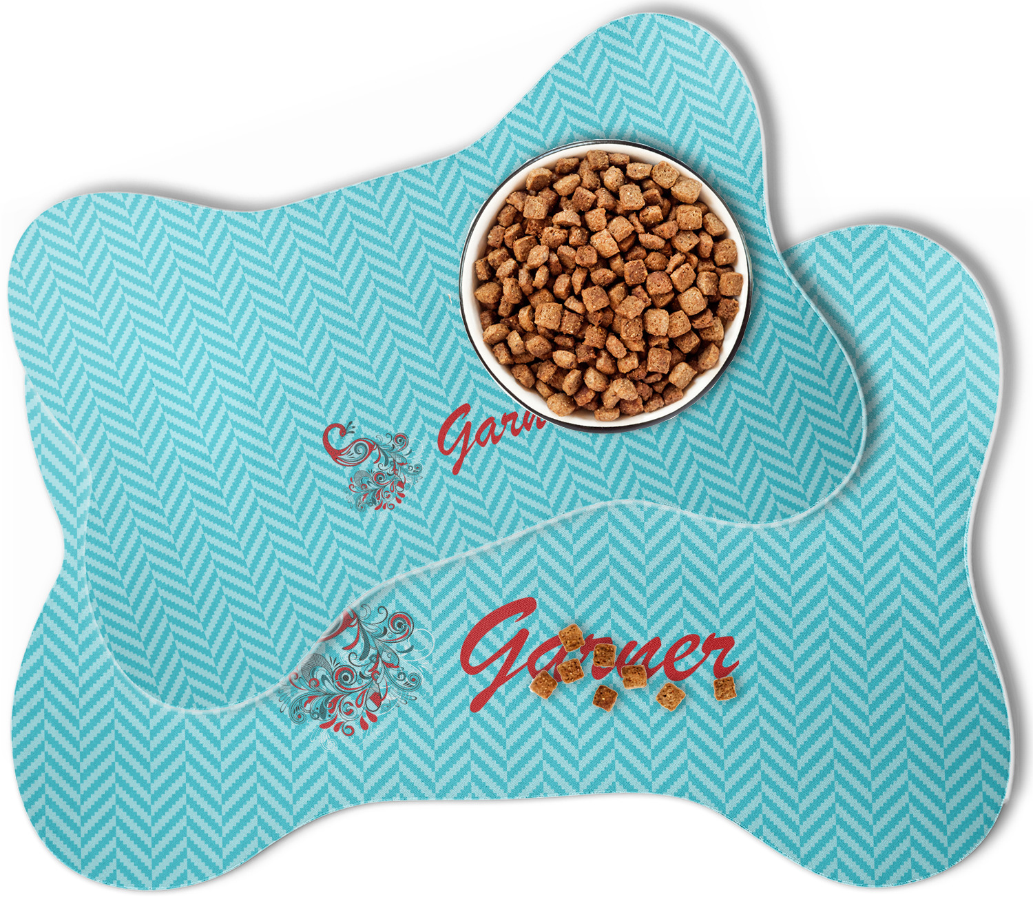 The bone-shaped dog bowl mat is the perfect way to add a touch of personality to your dog's eating area! Dogs make inevitable messes, especially when they eat and drink. Save the integrity of your floors and the time spent cleaning them by purchasing a personalized mat that catches spills!