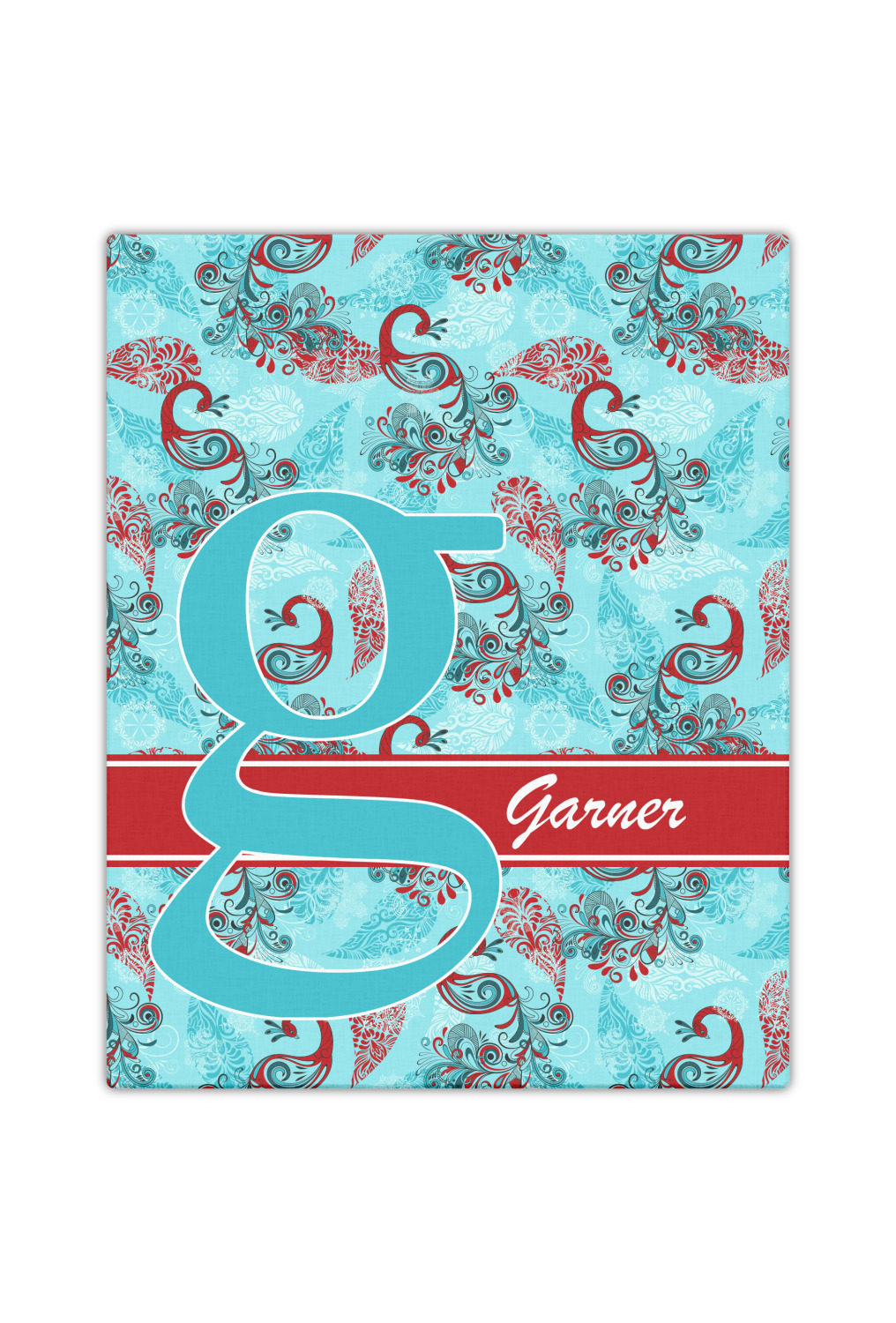 We chose to personalize with Initial and Name on the ribbon; we red for the ribbon, teal for the initial and white for the name. We have also chosen tone on tone herringbone design for our coordinating pattern and it looks simply beautiful (see bedding).