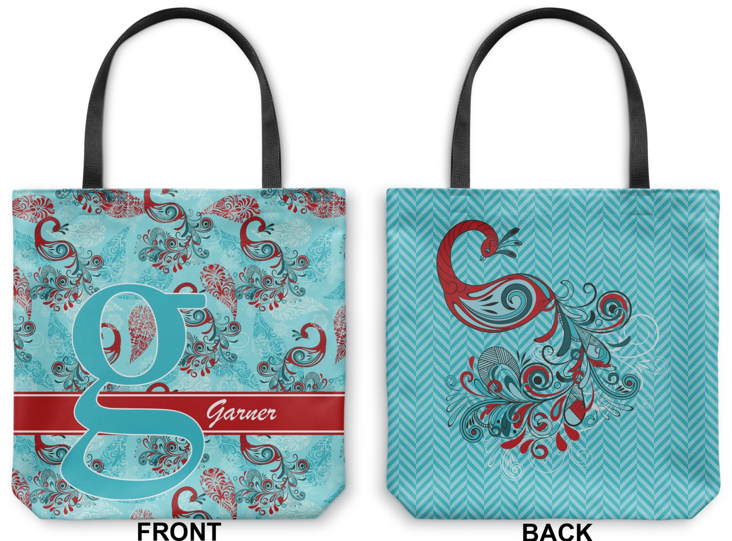 This peacock design is stunning. It has an beautifully illustrated peocock in teal and red, along with with some paisleys in the background.