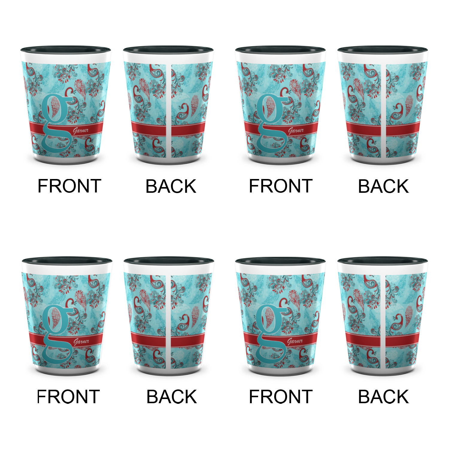 Made from ceramic these shot glasses are printed in full color with the design of your choice. These are a standard 1.5oz size and stand 2.25" tall. Available in a full white ceramic or a two-tone with a black color inside the shot glass. Buy a single or a set of 4, all of which can be designed separately to get you just what you want and need.