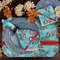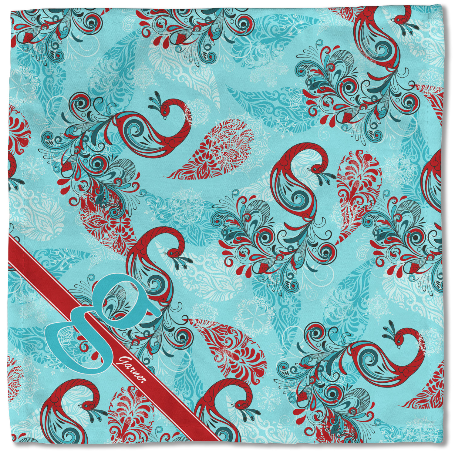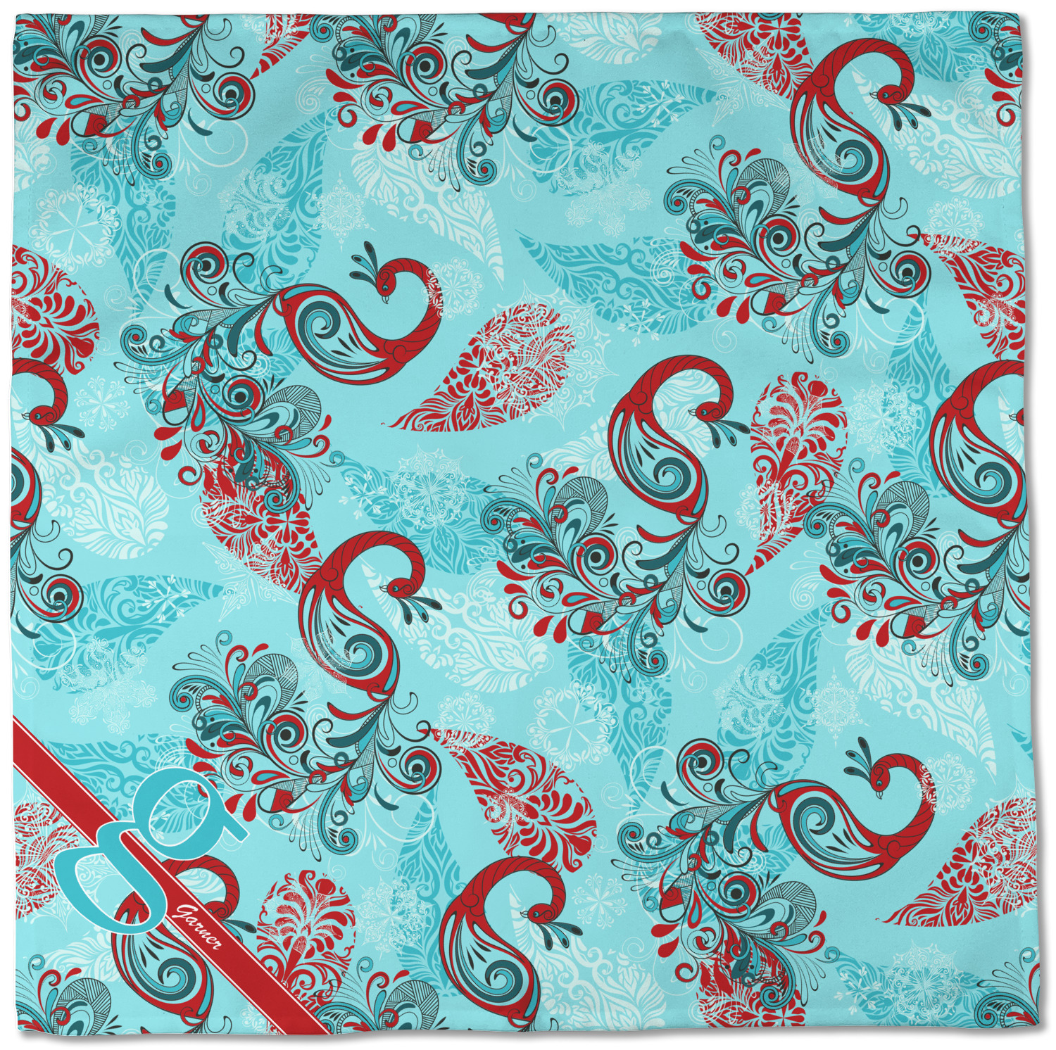 This peacock design is stunning. It has an beautifully illustrated peocock in teal and red, along with with some paisleys in the background.