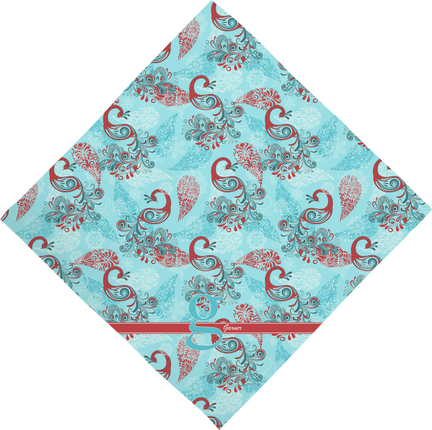 This beautiful pet bandana really is the perfect accessory. It is made from a silky feeling polyester and measures at approximately 23" x 23". Your personalization will be printed on a diagonal, so that you are able to read the personalization when folded into a triangle. This bandana fits best on large dogs, but can be folded smaller if there is no personalized text to fit smaller pets.