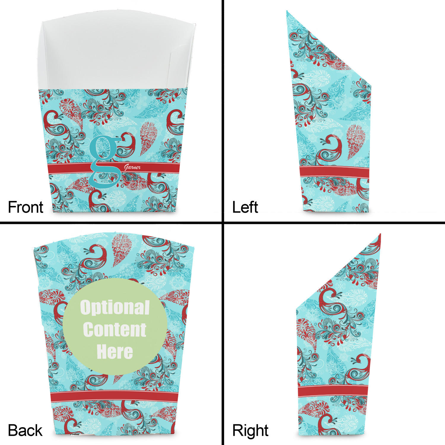 These favor boxes are printed in full color on quality cardstock - so coordinating the french fry favor boxes to match your event's themes or colors should be a breeze. You can upload your own design including artwork, logos or photos