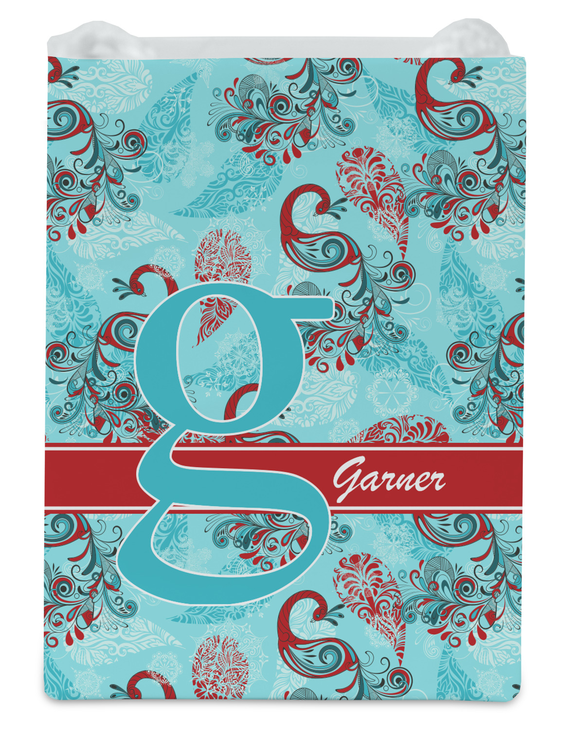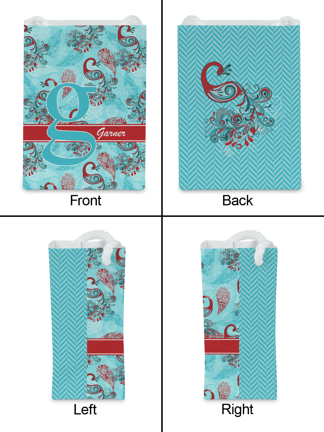 We chose to personalize with Initial and Name on the ribbon; we red for the ribbon, teal for the initial and white for the name. We have also chosen tone on tone herringbone design for our coordinating pattern and it looks simply beautiful (see bedding).