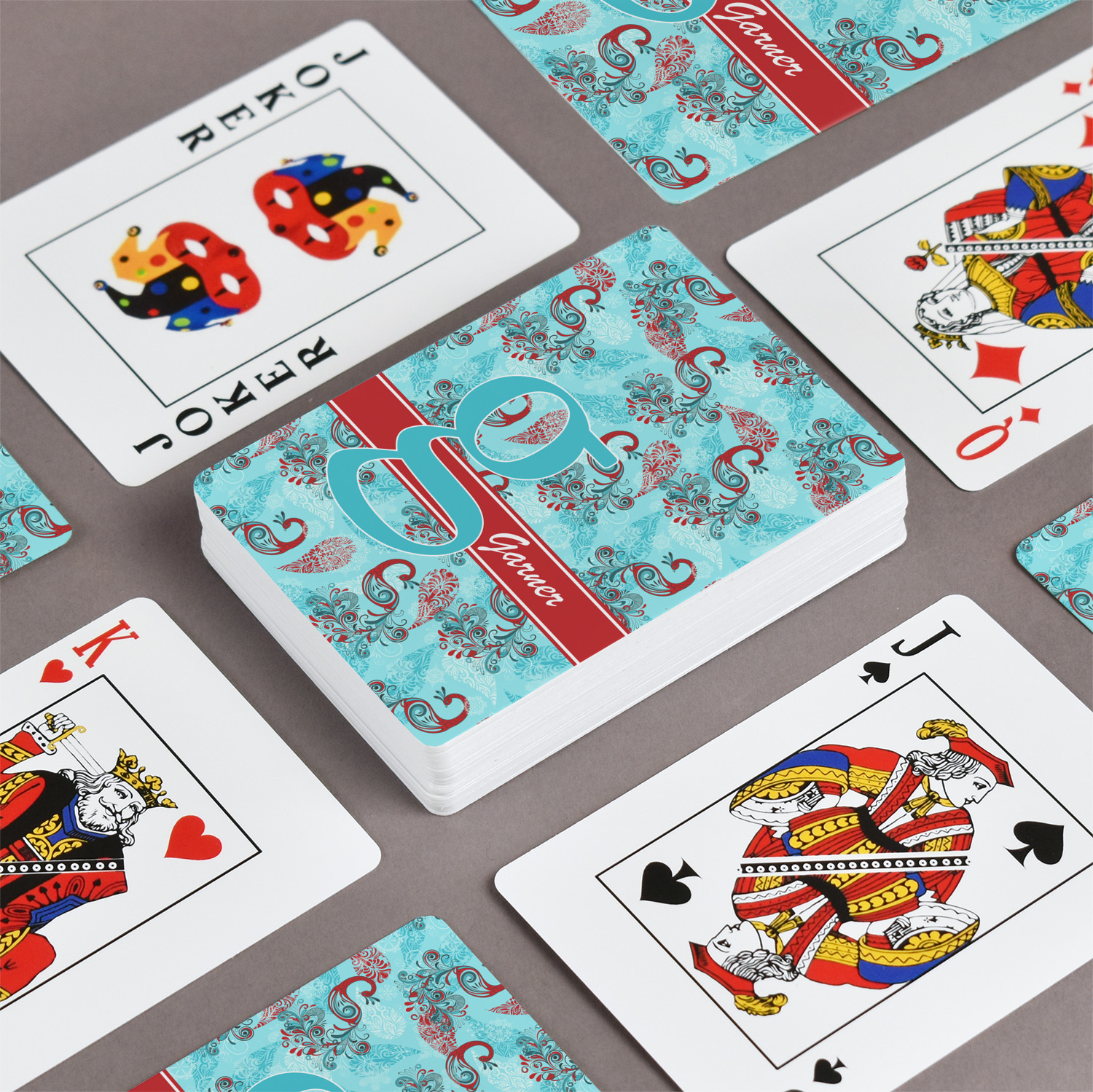 Here at YouCustomizeIt, you can customize your playing cards by uploading your own design, photo, or logo. We have design templates that you can customize by changing the patterns, colors, graphics, personalization styles, etc. - using our free for you to use in our design elements library.
