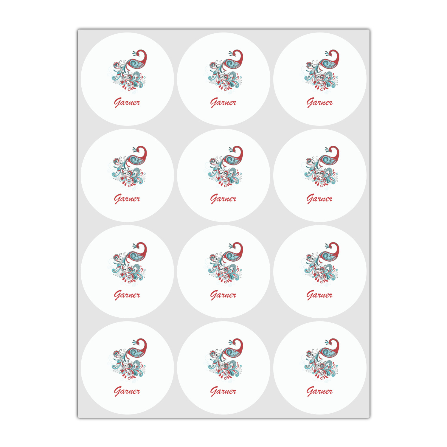 This peacock design is stunning. It has an beautifully illustrated peocock in teal and red, along with with some paisleys in the background.