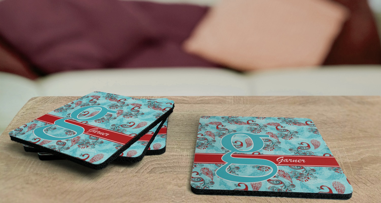 Replace your boring, run-of-the-mill coasters with a set of 4 personalized coasters! When personalized, these coasters will protect your beloved surfaces while adding to your home's decor! Thanks to your coasters bright colors and unique design, your guests will be eager to use them!