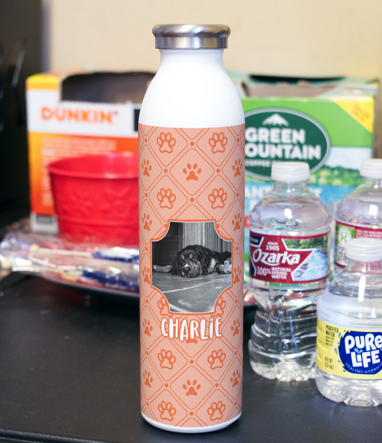 Design your bottle and we will print your design with a UV stable ink so it will not fade over time. After printing the design we apply a clear coat over the print to ensure its durability will stand up to rough every day use.
