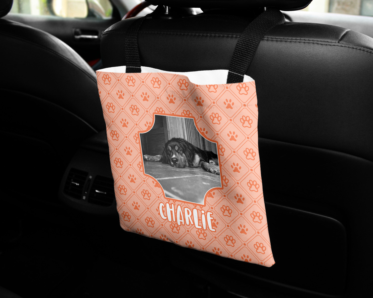 These car back seat organizers are sturdy tote-like bags, fabricated from a robust polyester, and features a single handle on the back side. The strap features an attachable velcro for easy attachment to headrests, grocery carts, car seats, and more. Simply undo the velcro, loop the strap around the headrest, reattach the velcro, and let the organizer hang from the front seat. These car organizers are the perfect means of increasing your backseat's legroom, while storing multiple items in one place for better accessibility. Each car back seat organizer measures at 10 by 10 inches, and features your personalized design printed across its front and back.