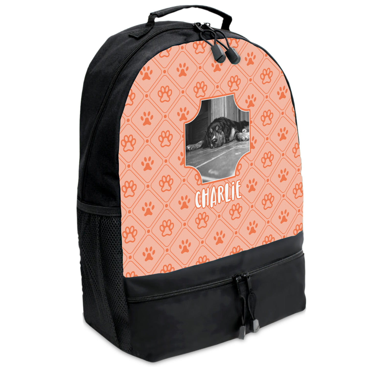 This design is a bright peach with accents of orange. In the middle, you can upload your favorite picture of your pet! It's a breeze with our design center. Underneath their picture, put their name or a fun saying. The background is filled with a fun pattern of pawprints and bones. This will be the perfect design for a sweet puppy.