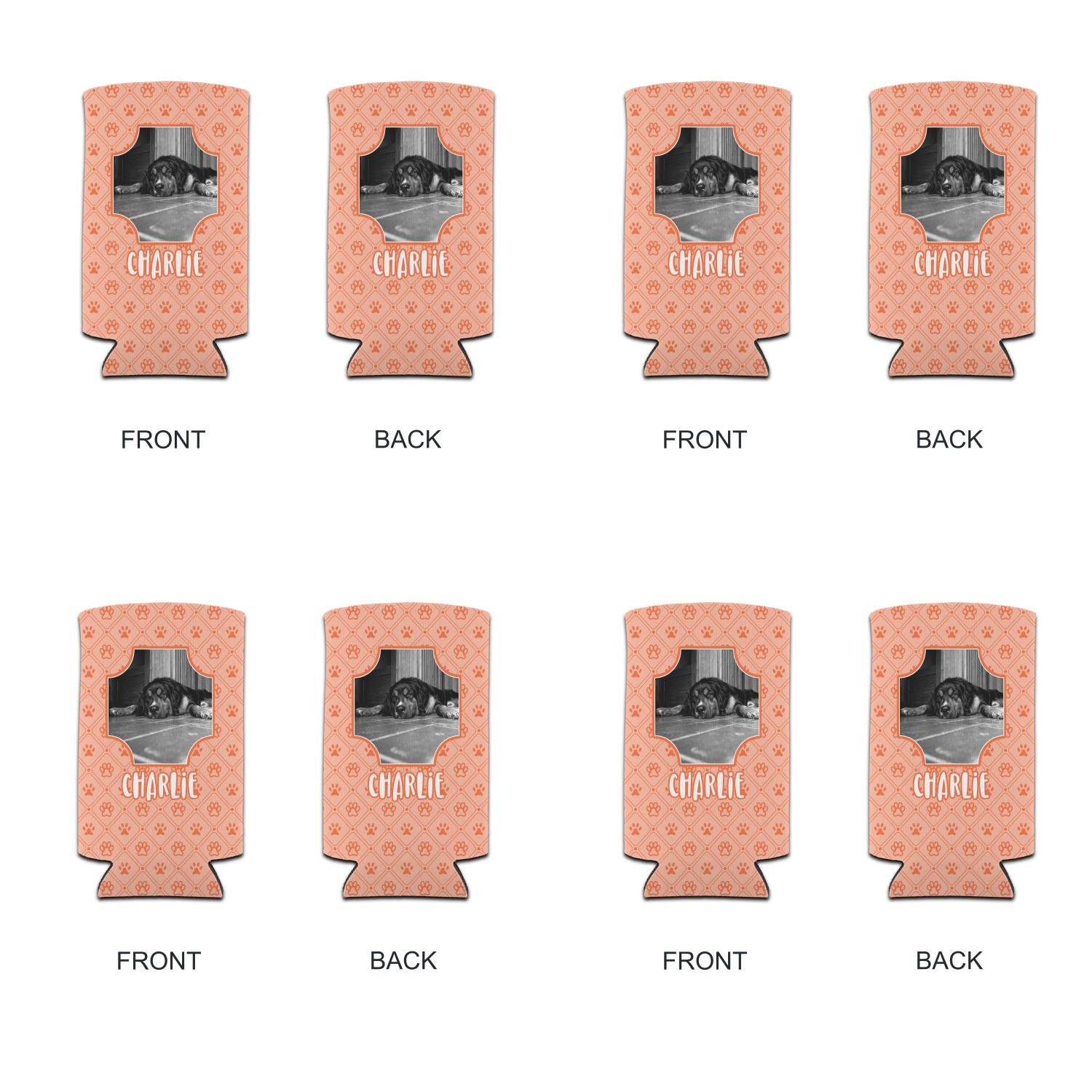 This design is a bright peach with accents of orange. In the middle, you can upload your favorite picture of your pet! It's a breeze with our design center. Underneath their picture, put their name or a fun saying. The background is filled with a fun pattern of pawprints and bones. This will be the perfect design for a sweet puppy.